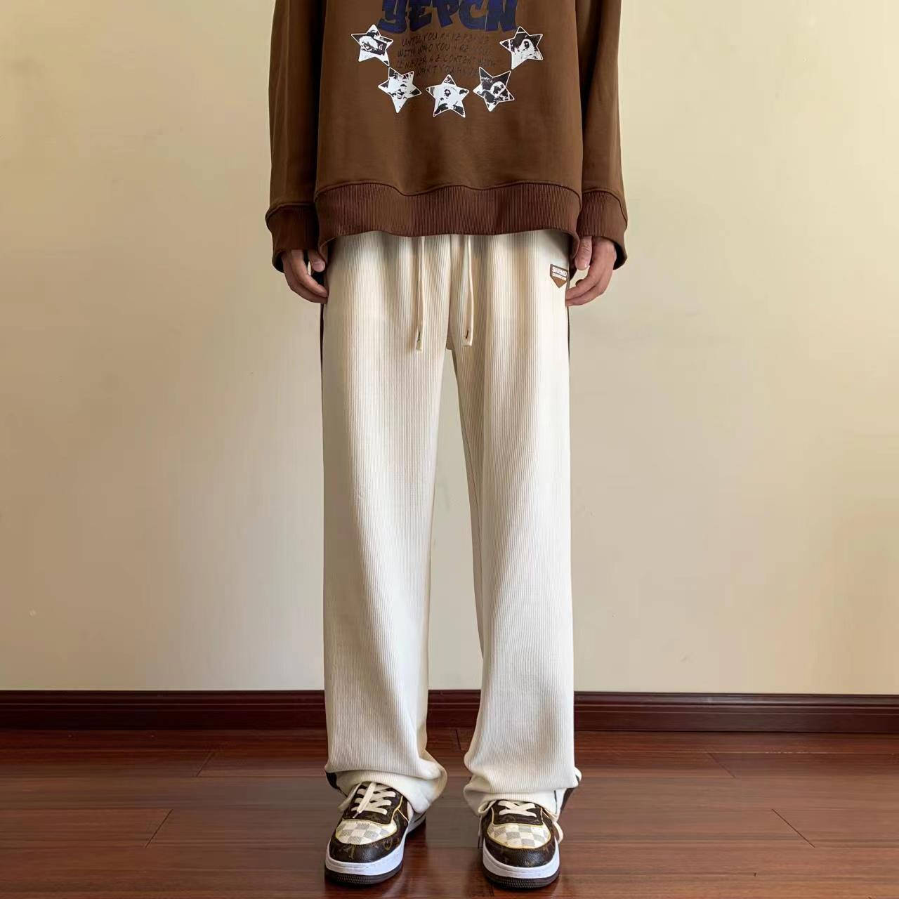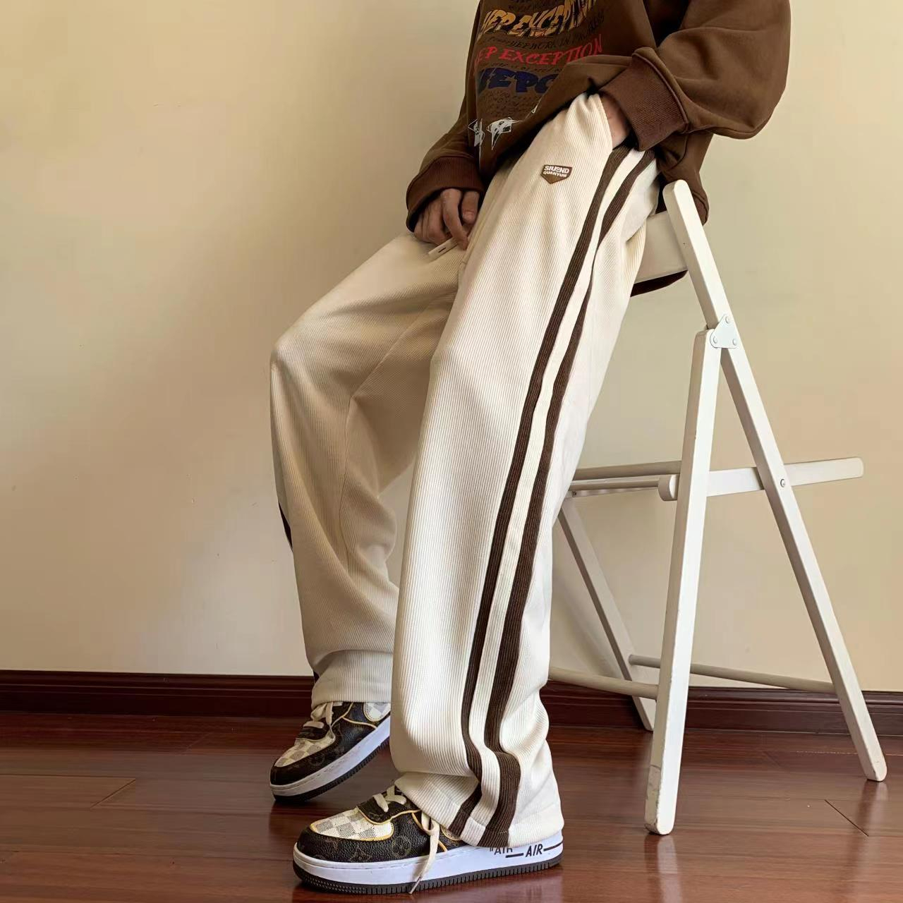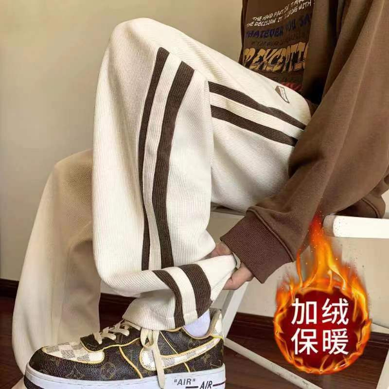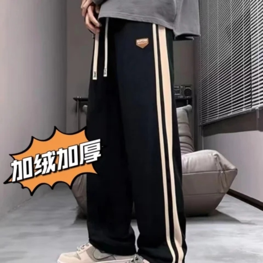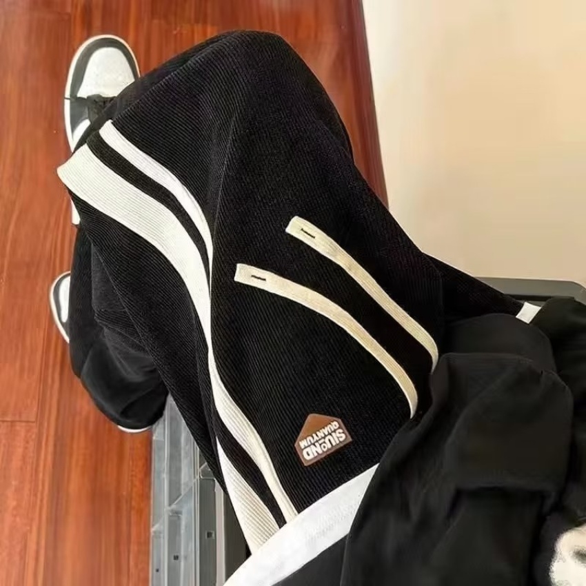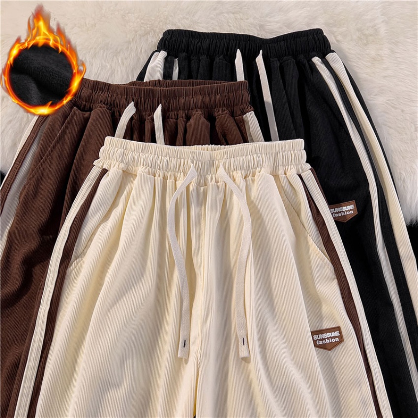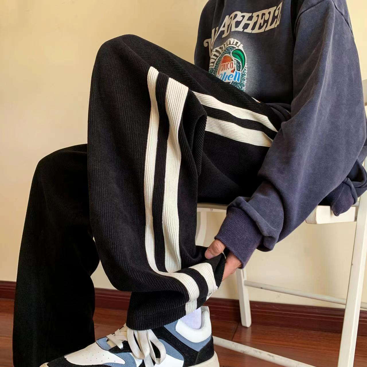 灯芯绒裤子男士春秋冬季款加绒阔腿宽松直筒运动卫裤男生休闲长裤