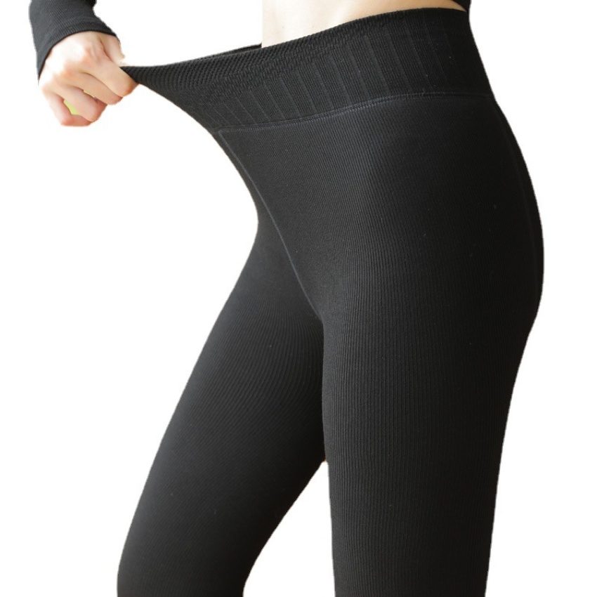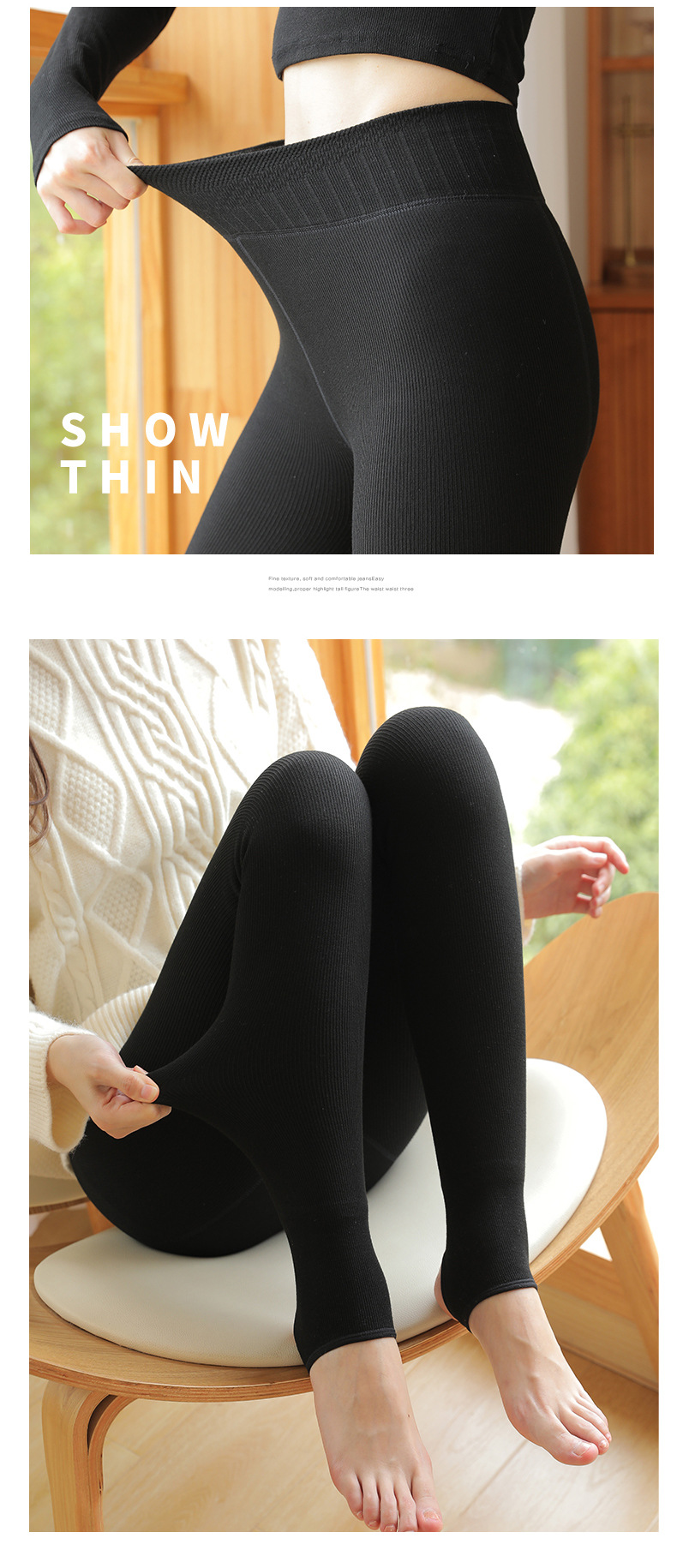 2023羊脂裤纪梵秋冬加厚打底裤女高腰棉竖条纹加绒打底裤踩脚长裤