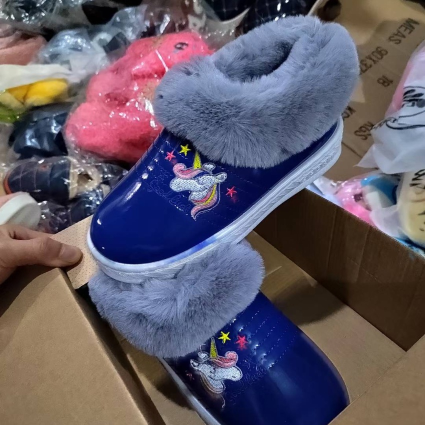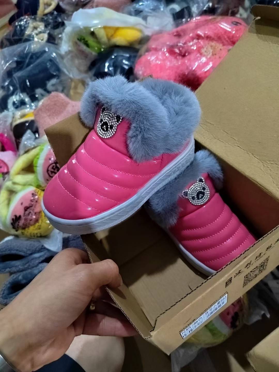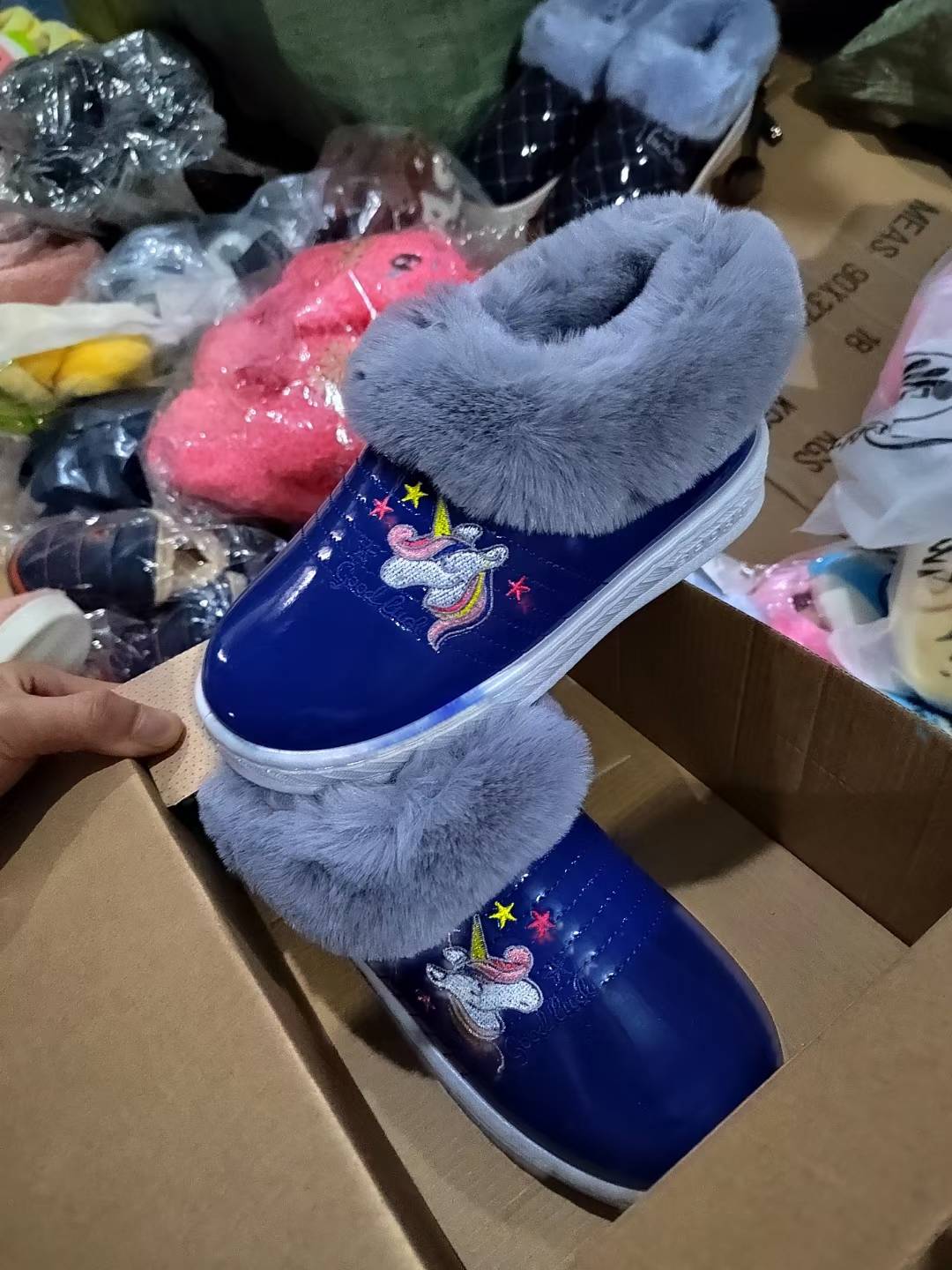 处理4000多双杂款的儿童冬季棉鞋,里面有少量的拖鞋,全清4.5元钱一双,分货5.5元 500双起发,全部都有包装部分的