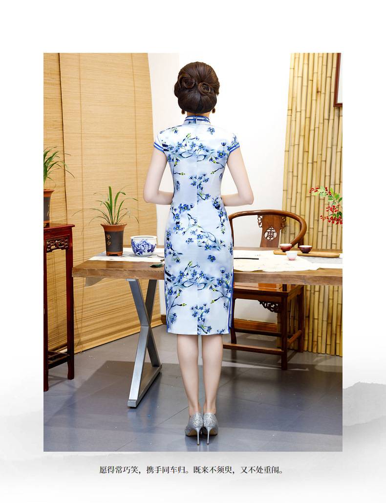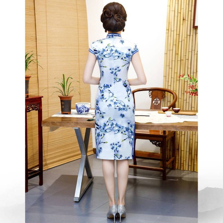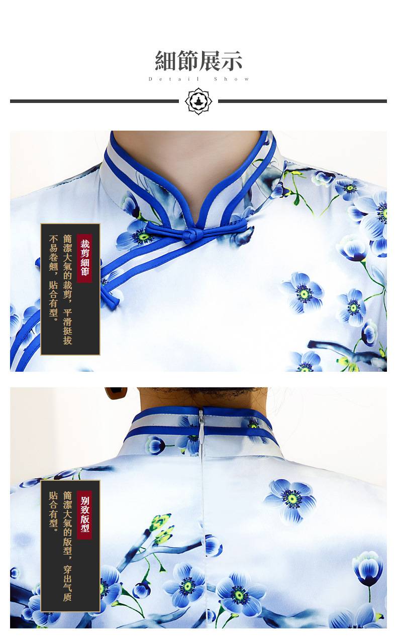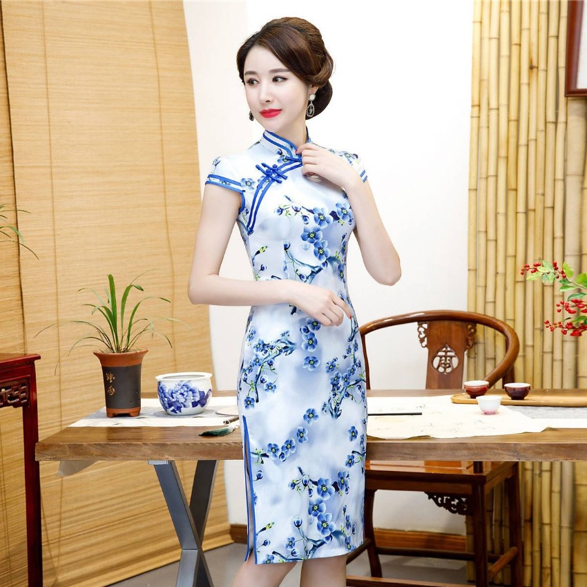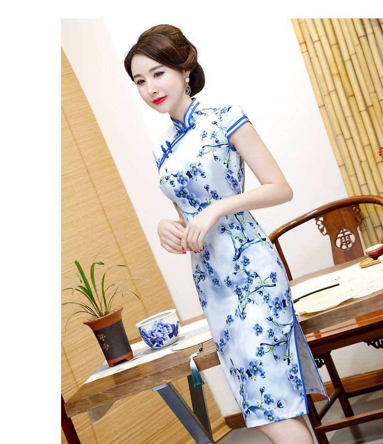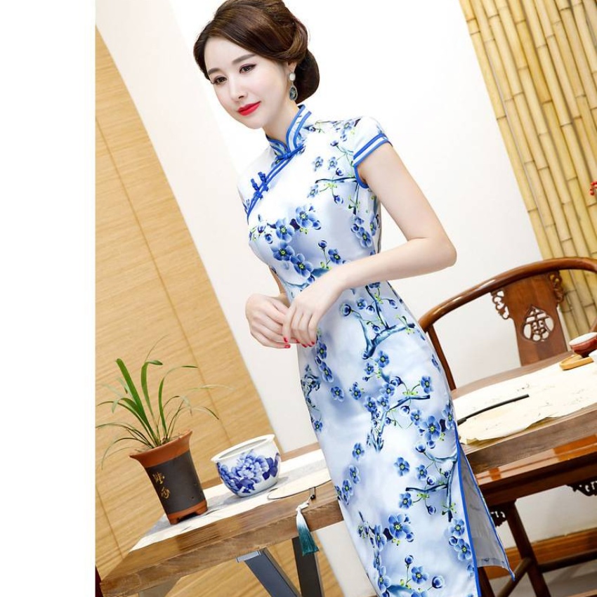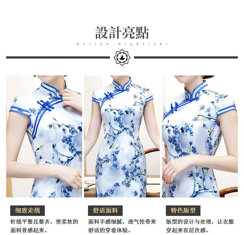 2019年新款春季浅蓝滴水领中长旗袍改良中国风少女旗袍裙