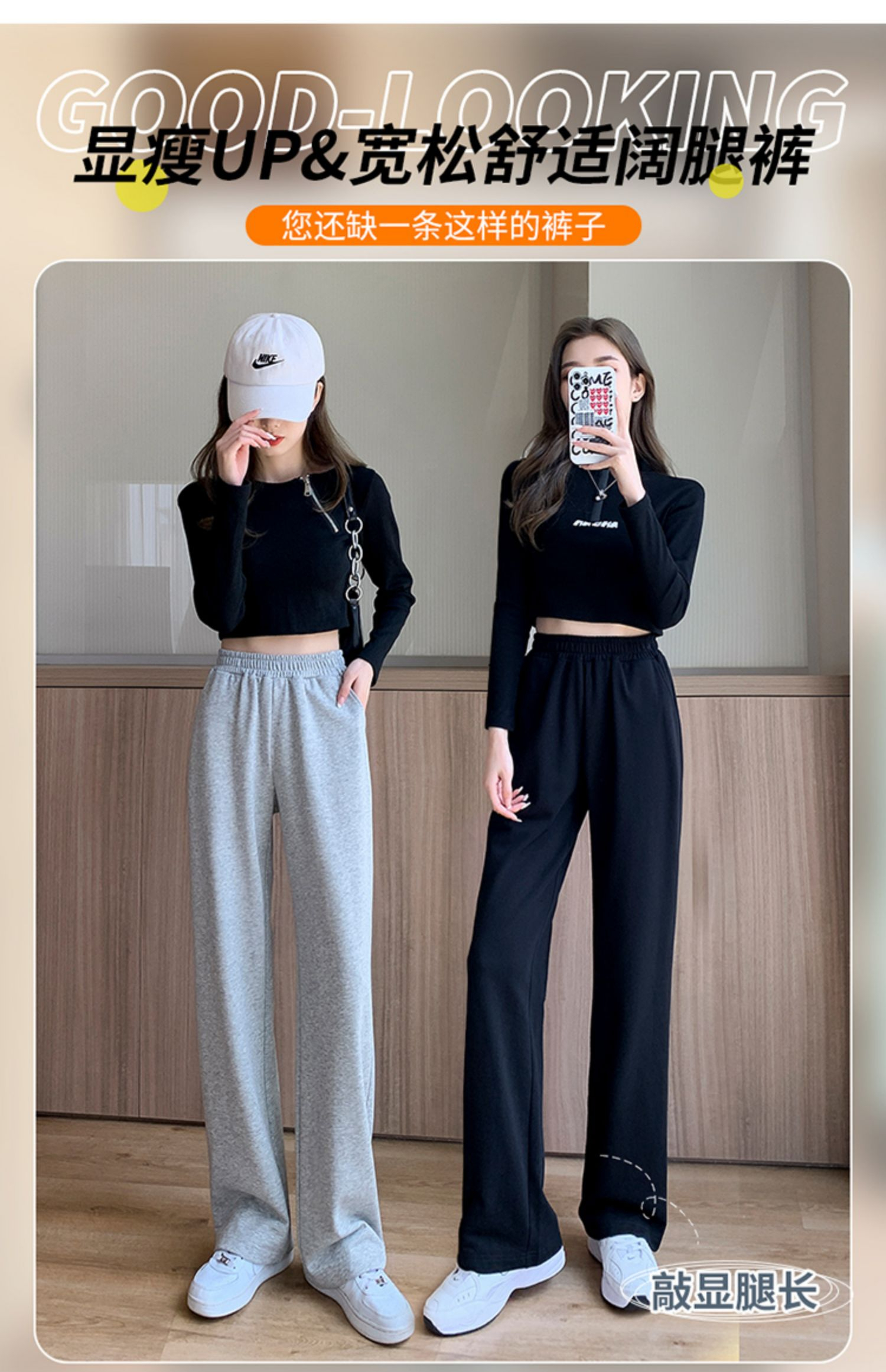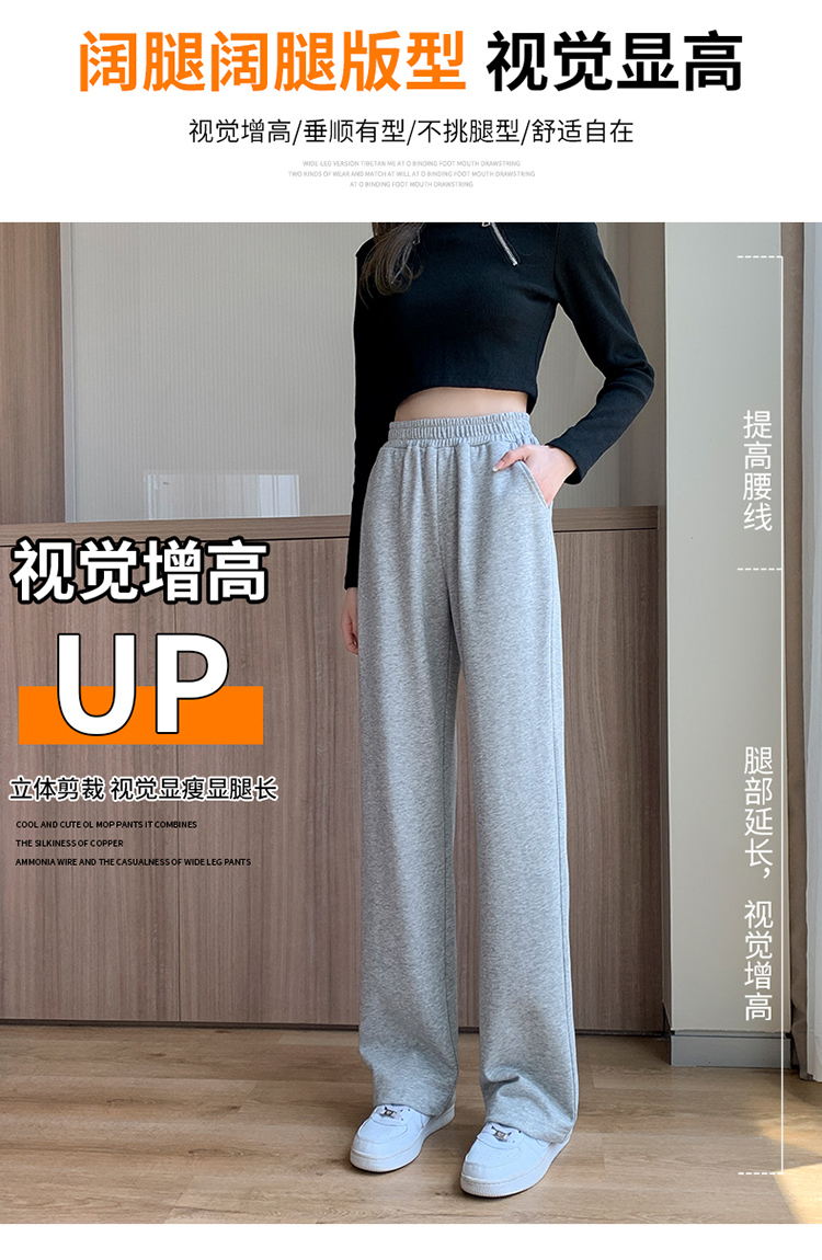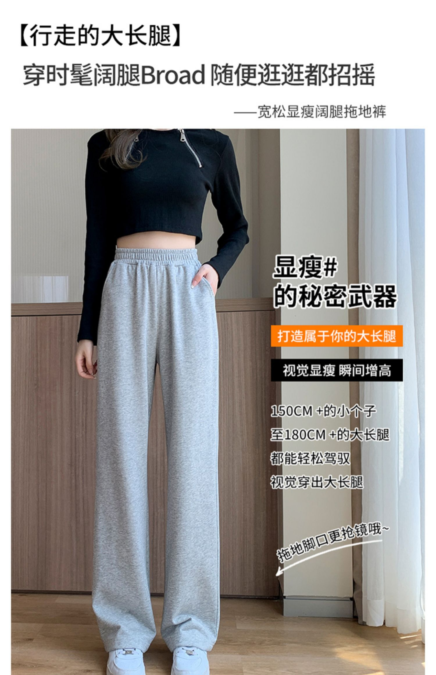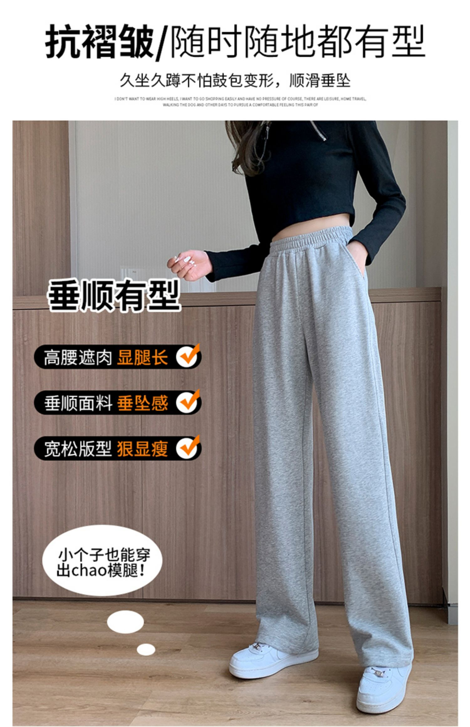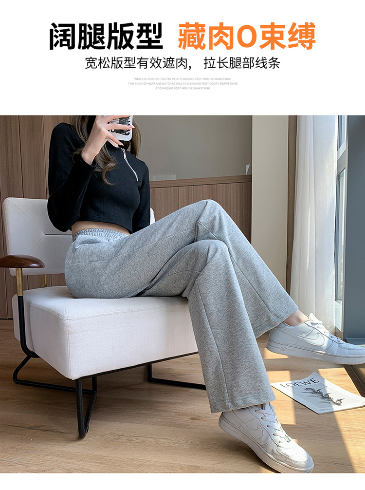 (鱼鳞)春秋设计感抽绳灰色直筒阔腿裤女装秋季新款高腰显瘦裤子