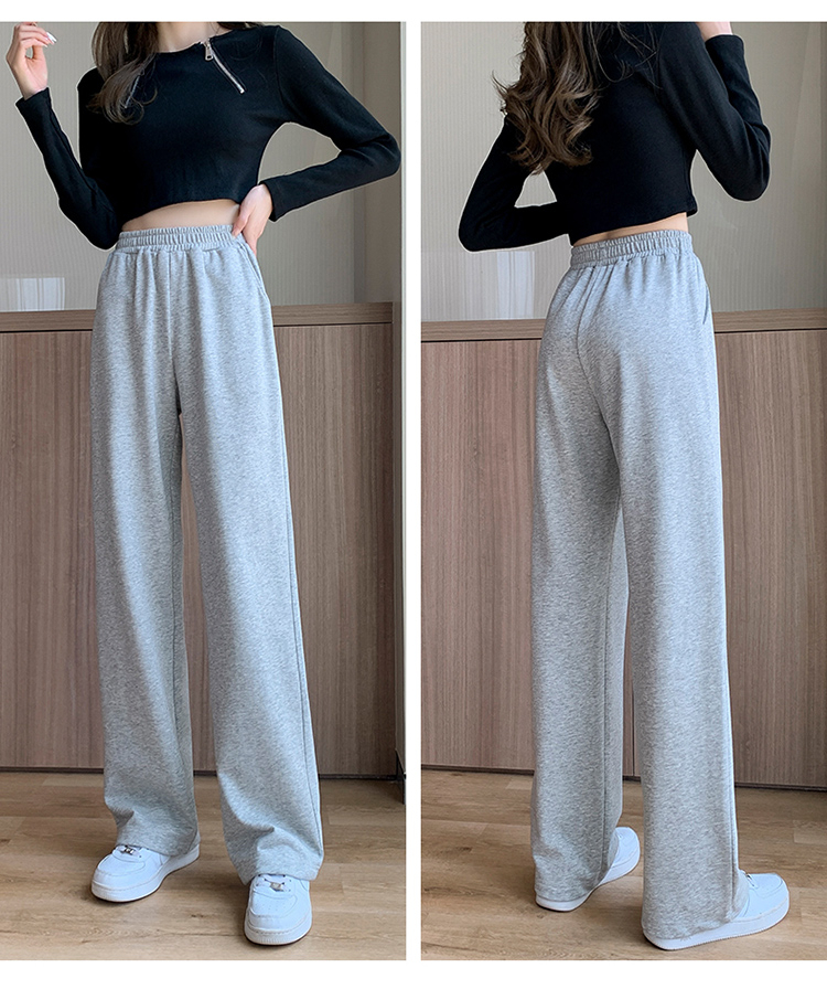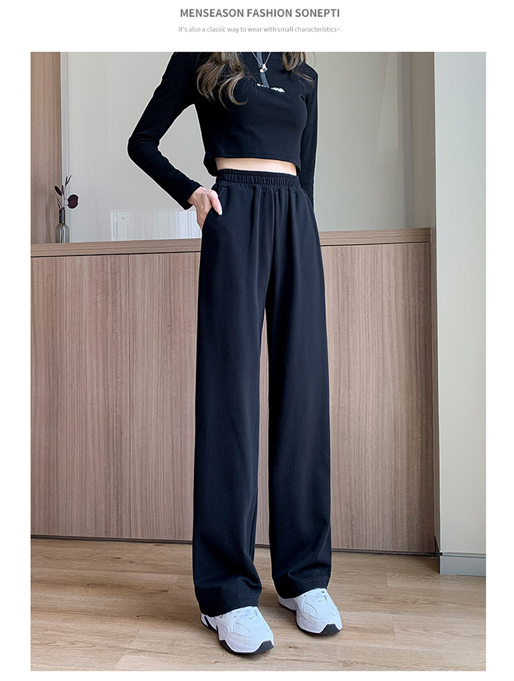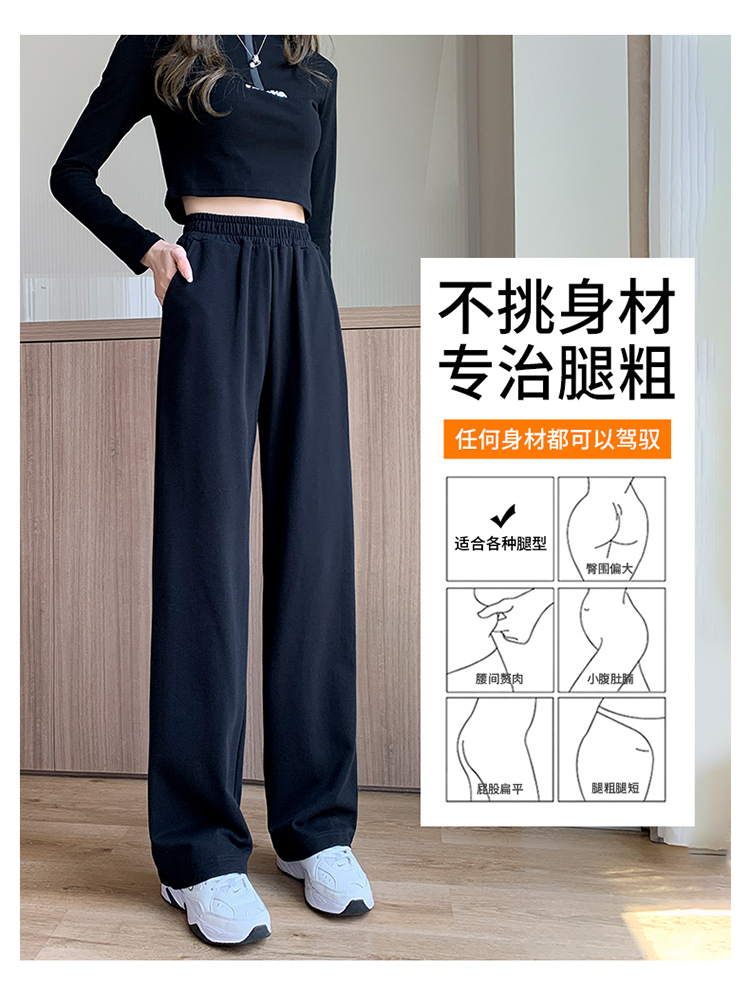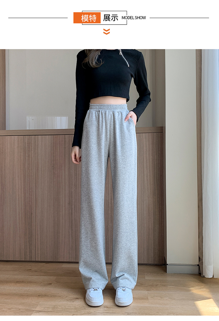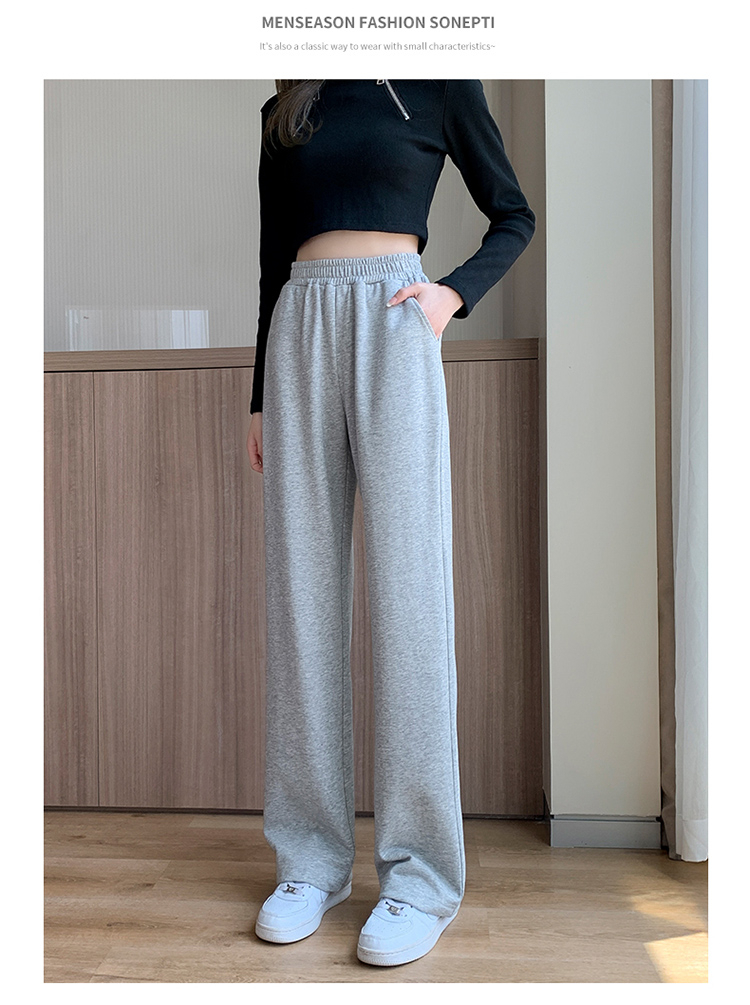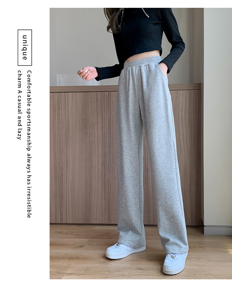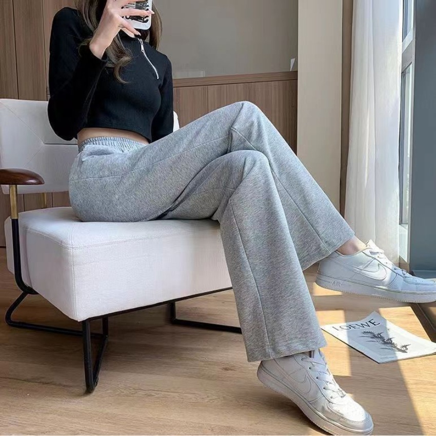 (鱼鳞)春秋设计感抽绳灰色直筒阔腿裤女装秋季新款高腰显瘦裤子