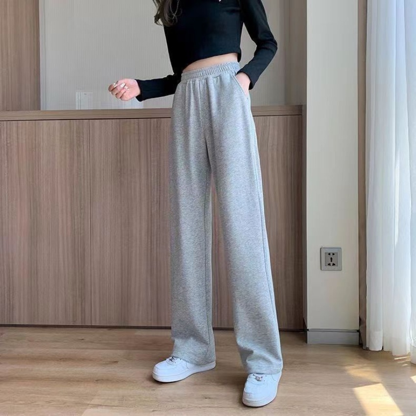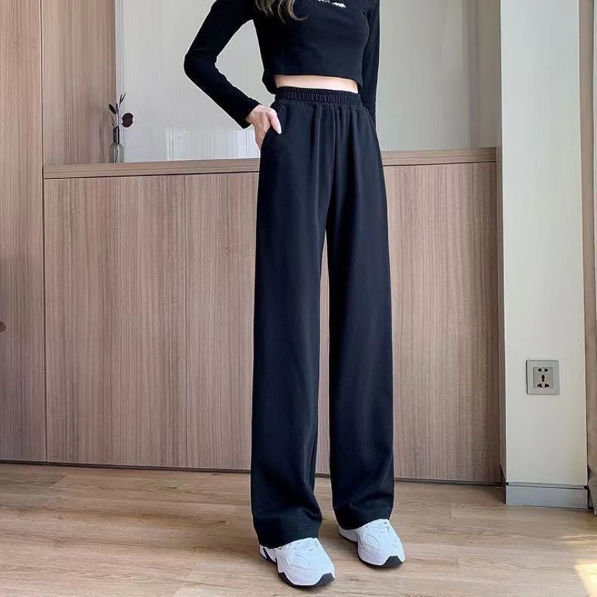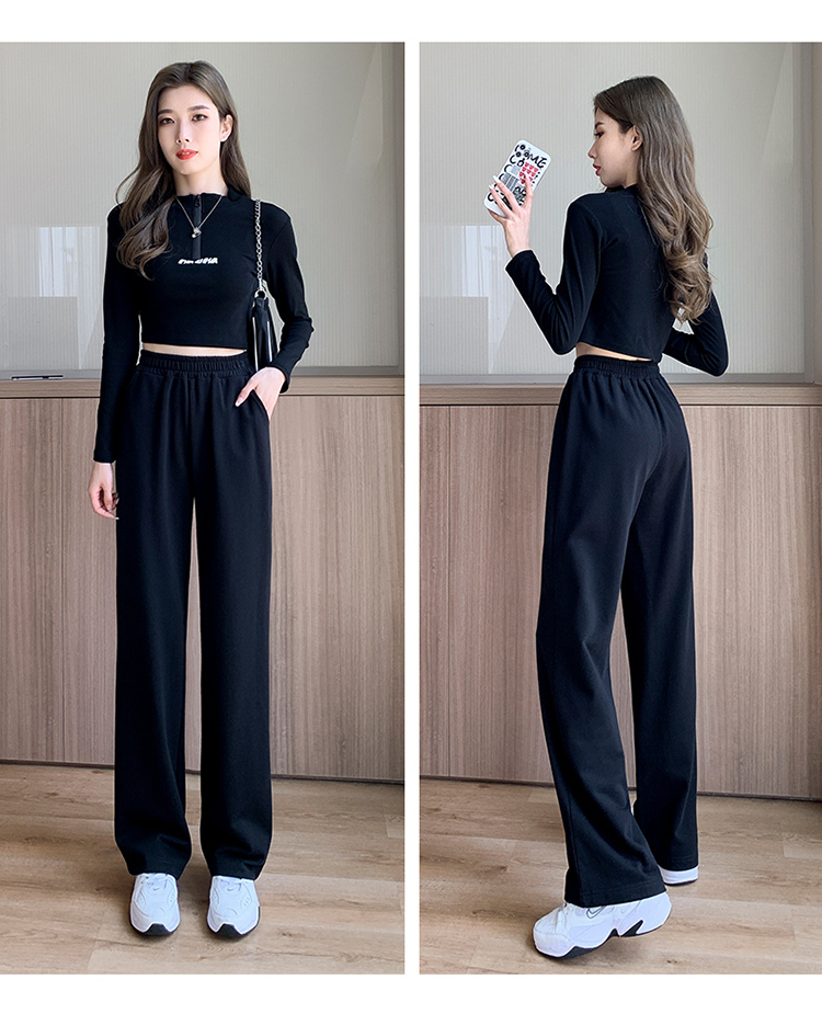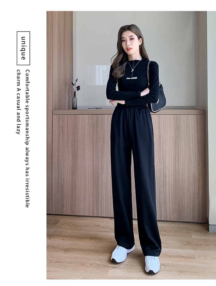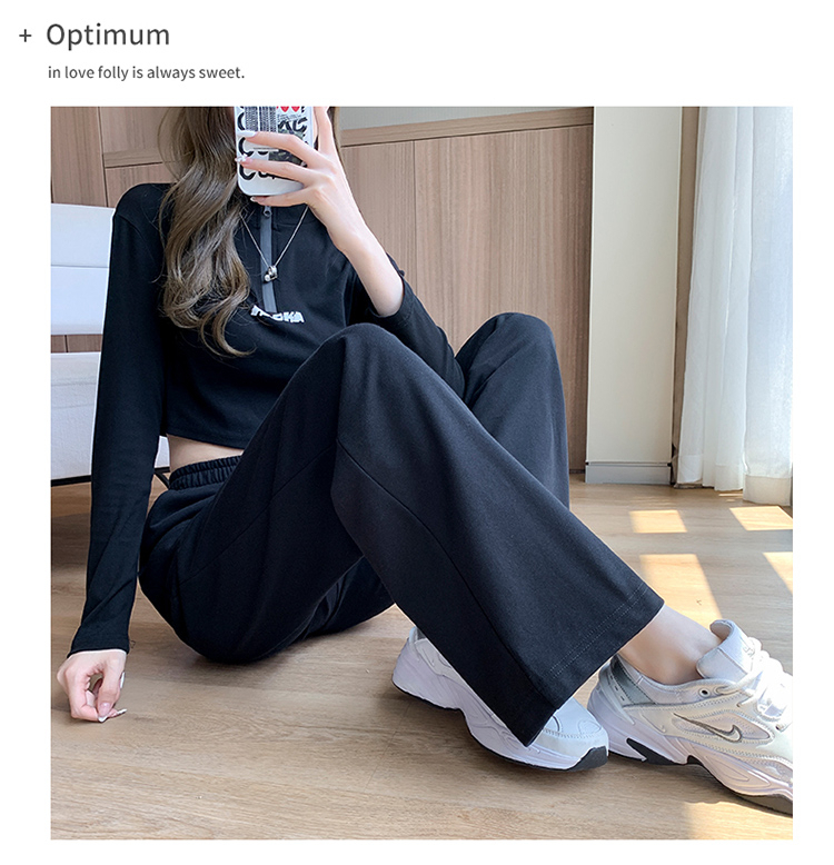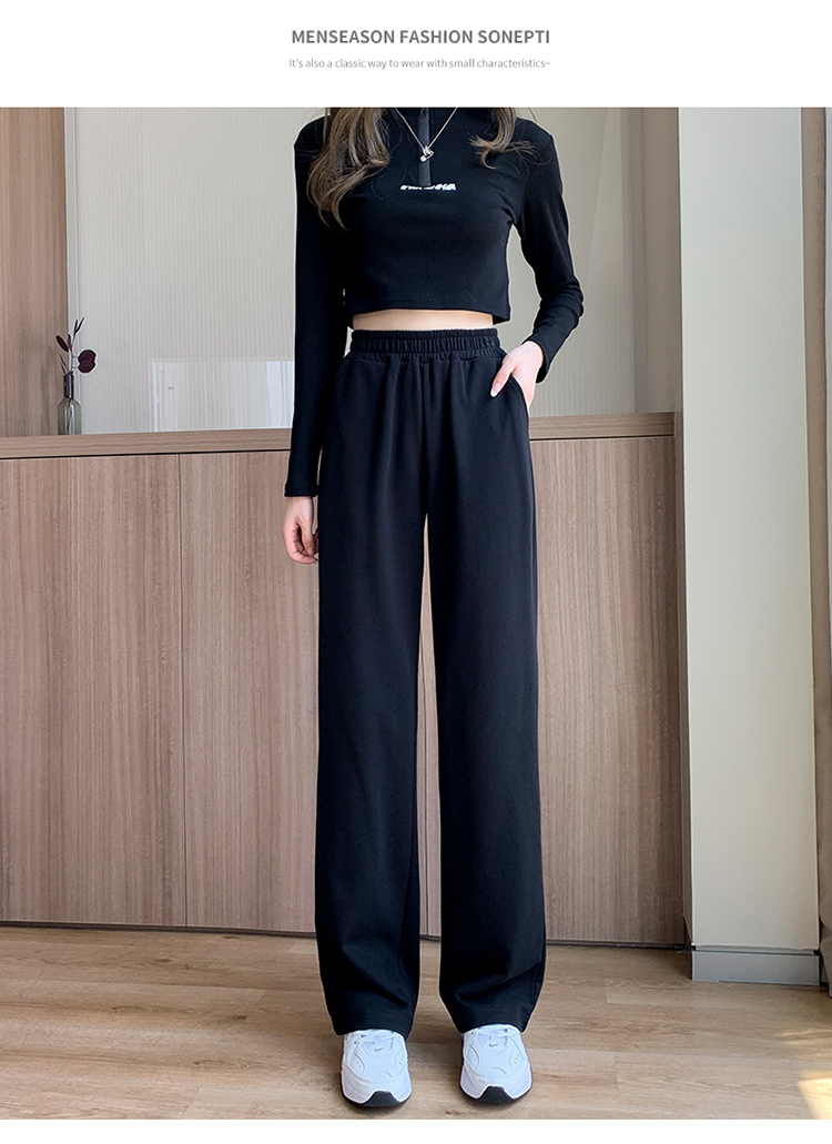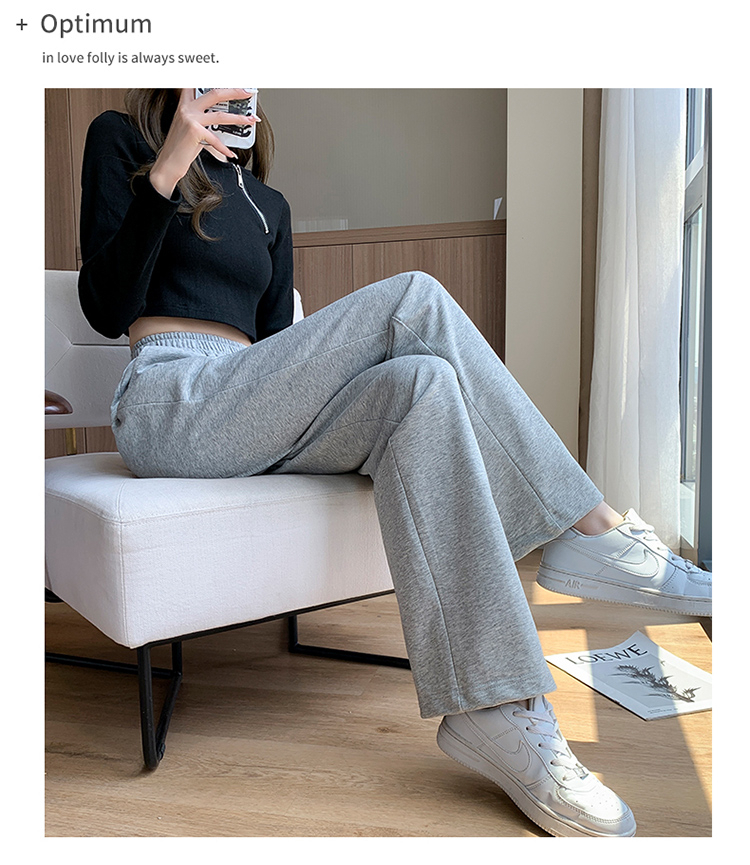 (鱼鳞)春秋设计感抽绳灰色直筒阔腿裤女装秋季新款高腰显瘦裤子