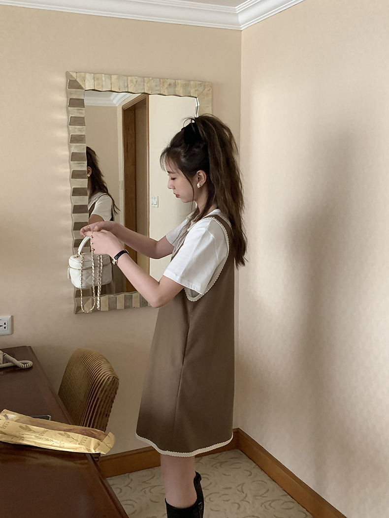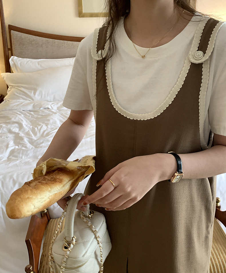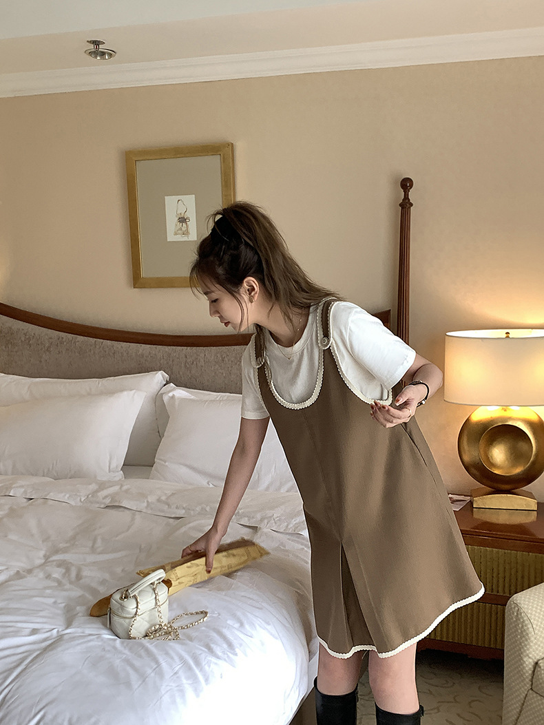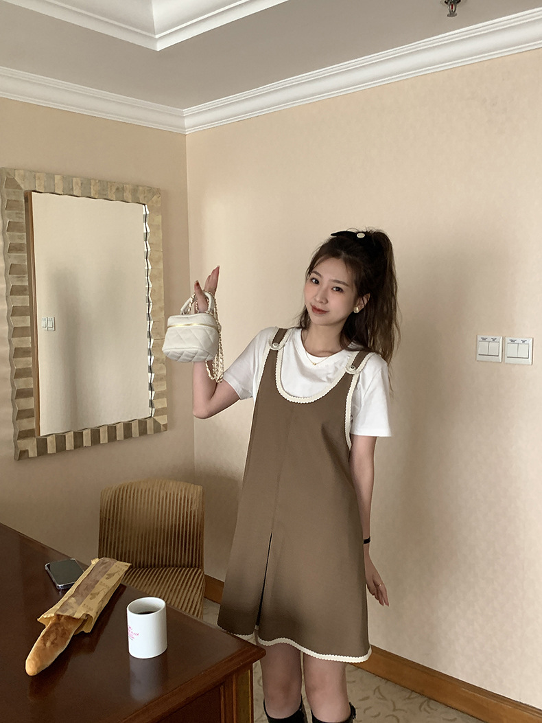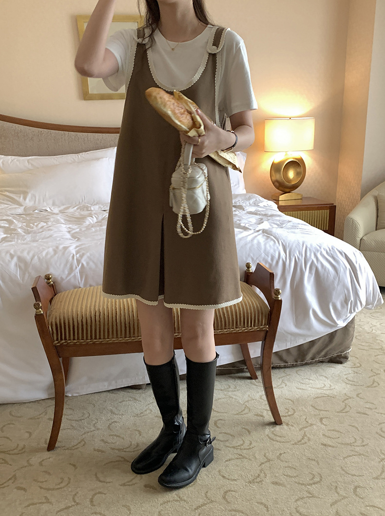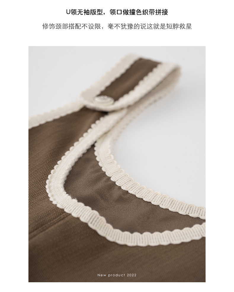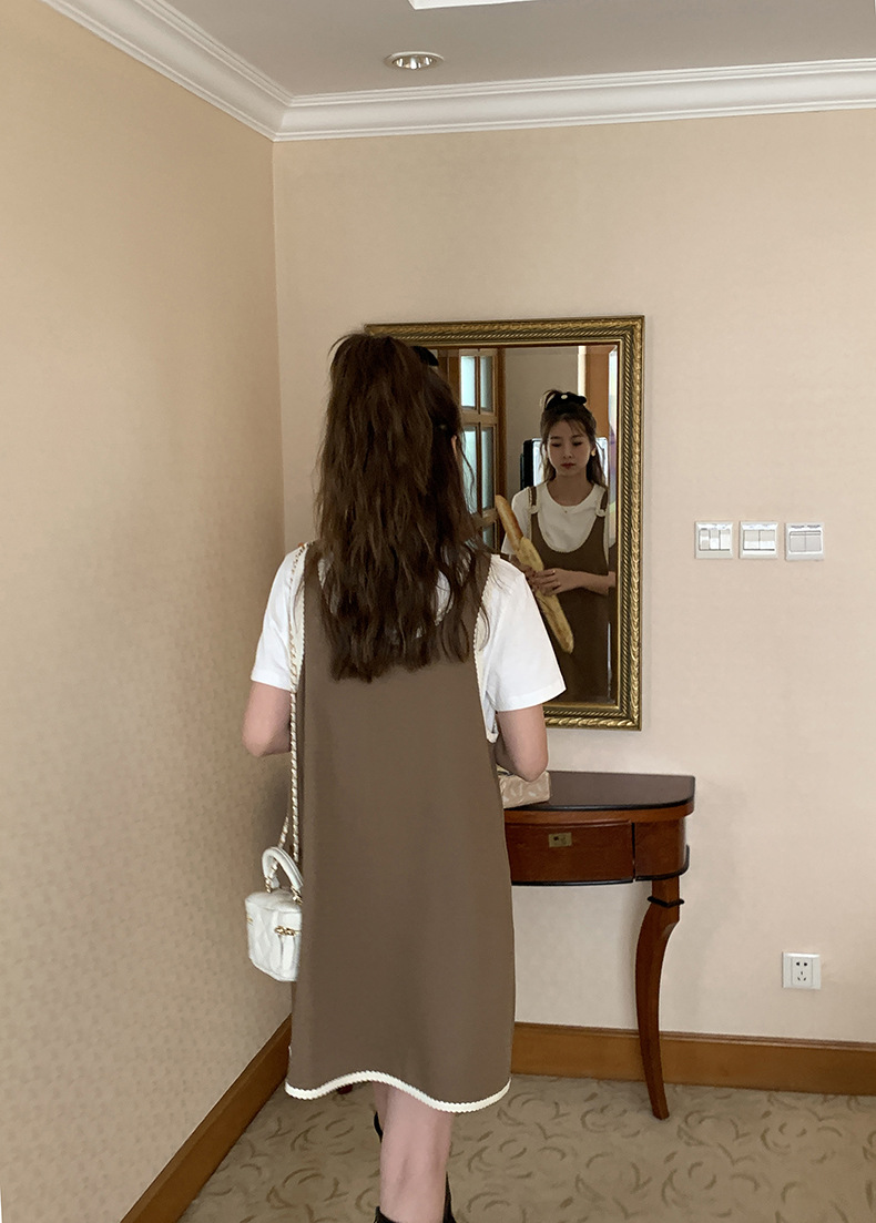 黄峥撞色吊带连衣裙女2026早秋韩版宽松休闲无袖背心裙123LZ8333