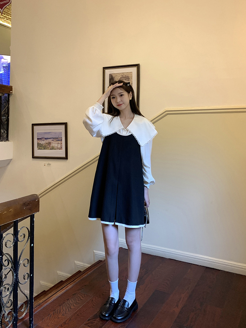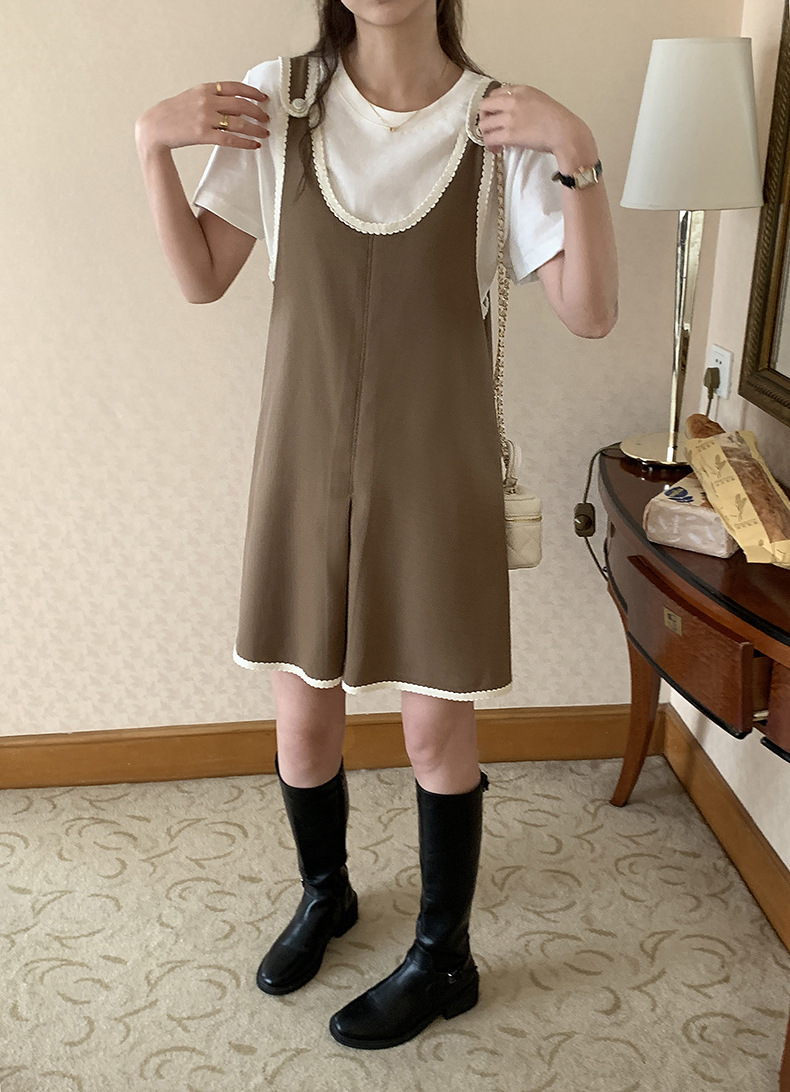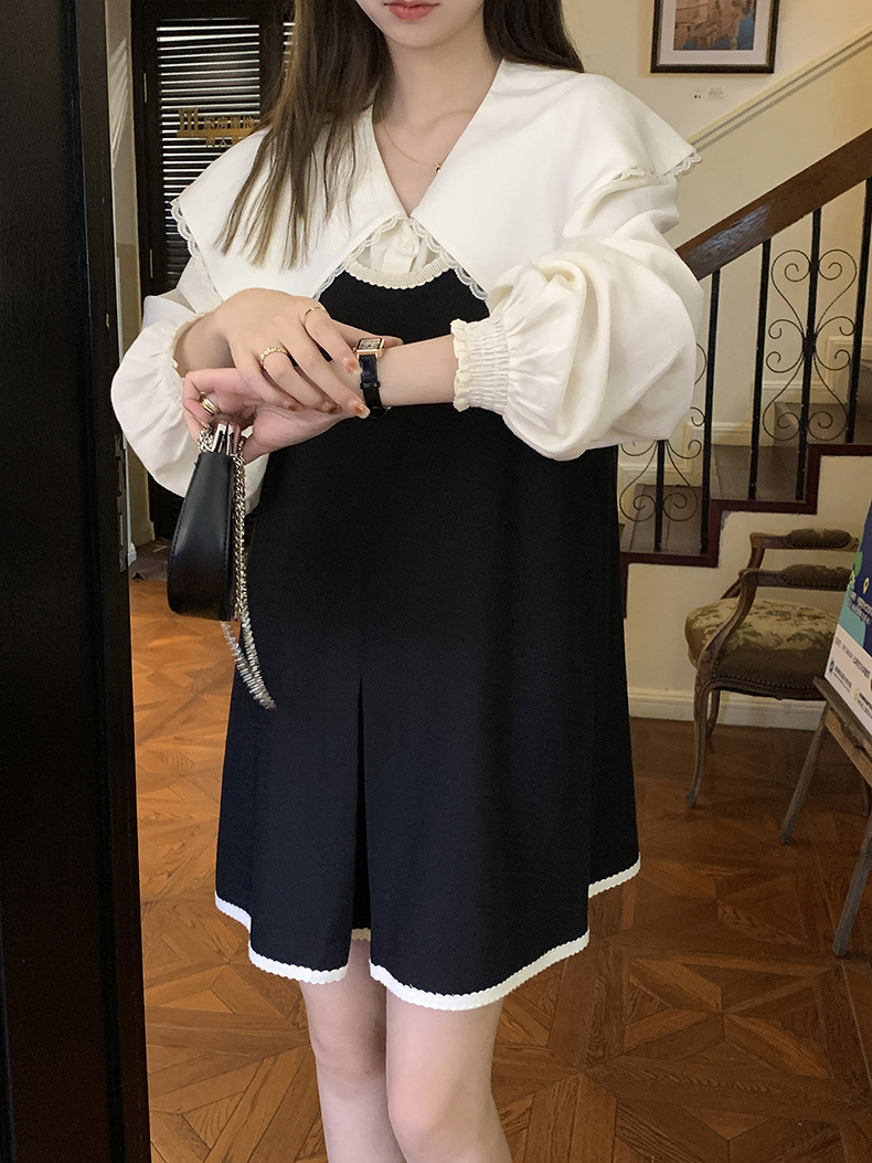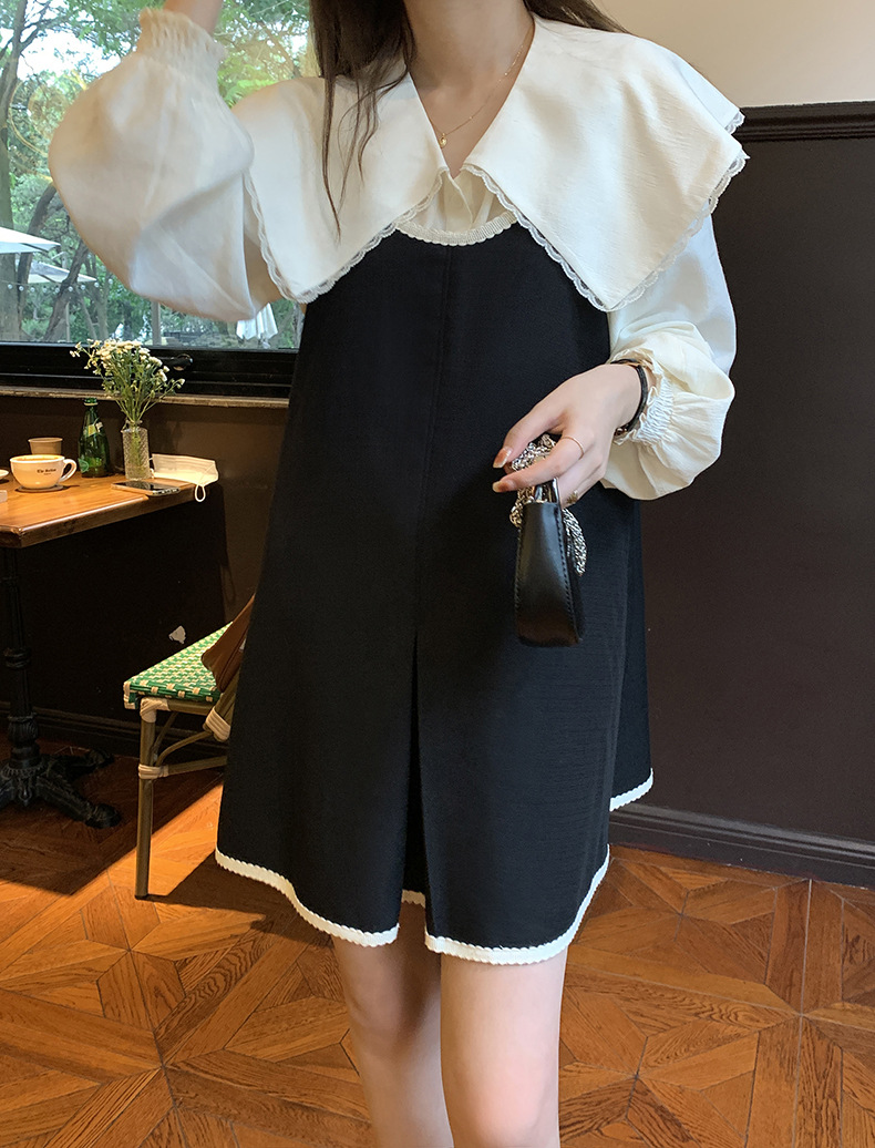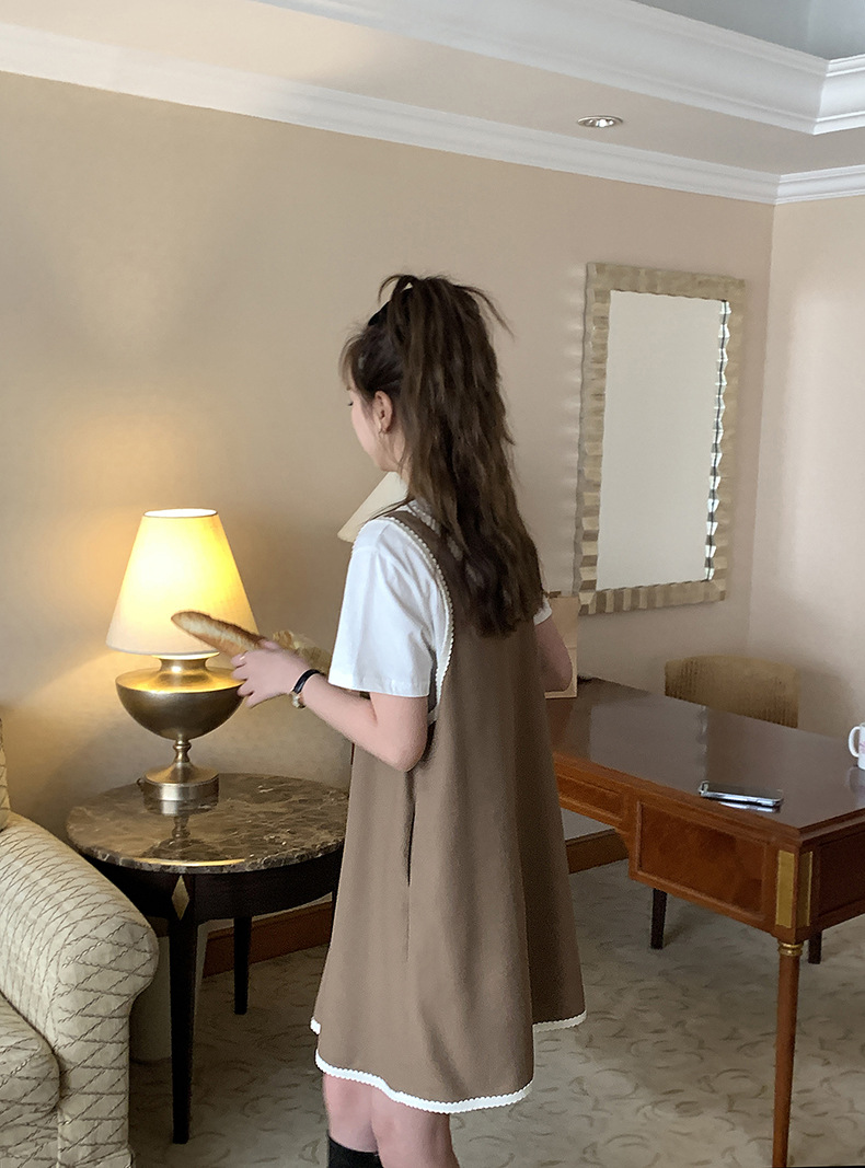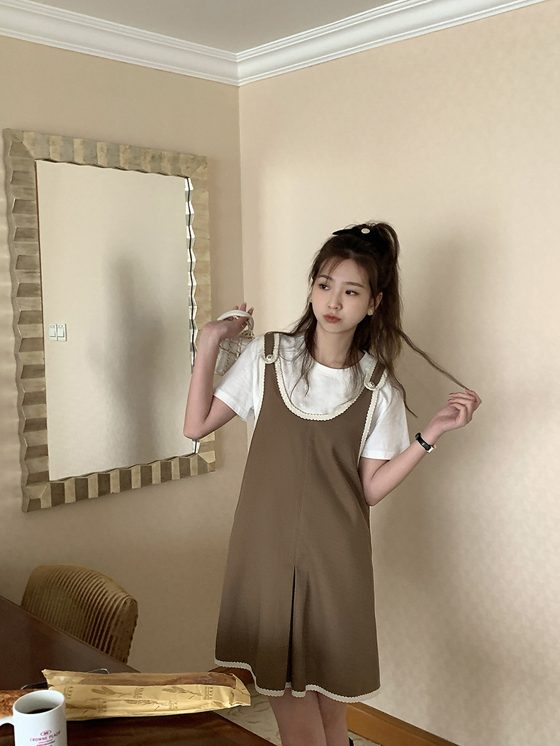 黄峥撞色吊带连衣裙女2026早秋韩版宽松休闲无袖背心裙123LZ8333