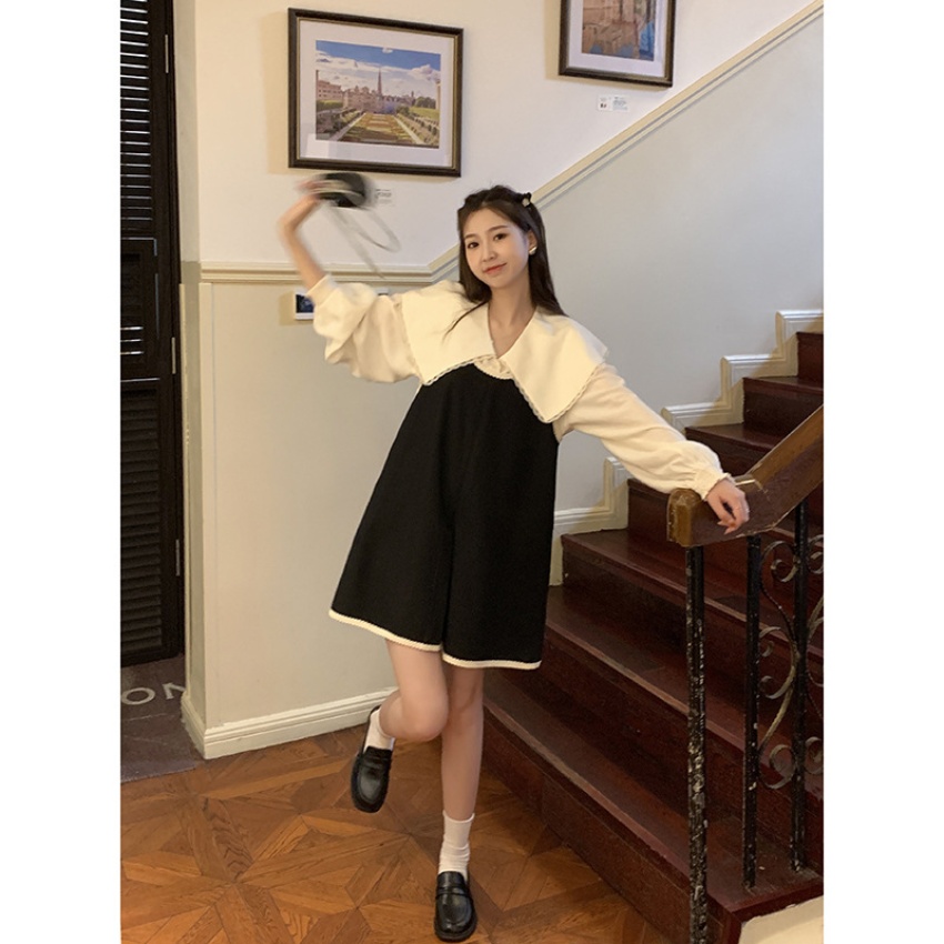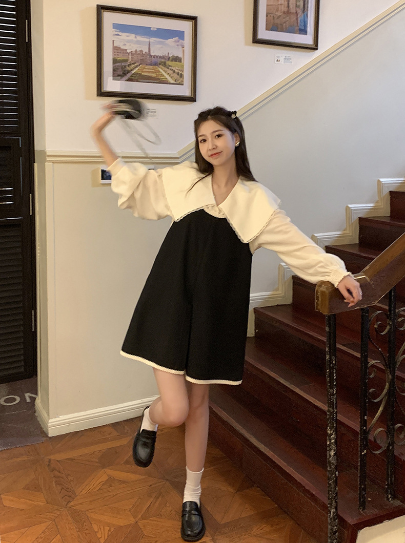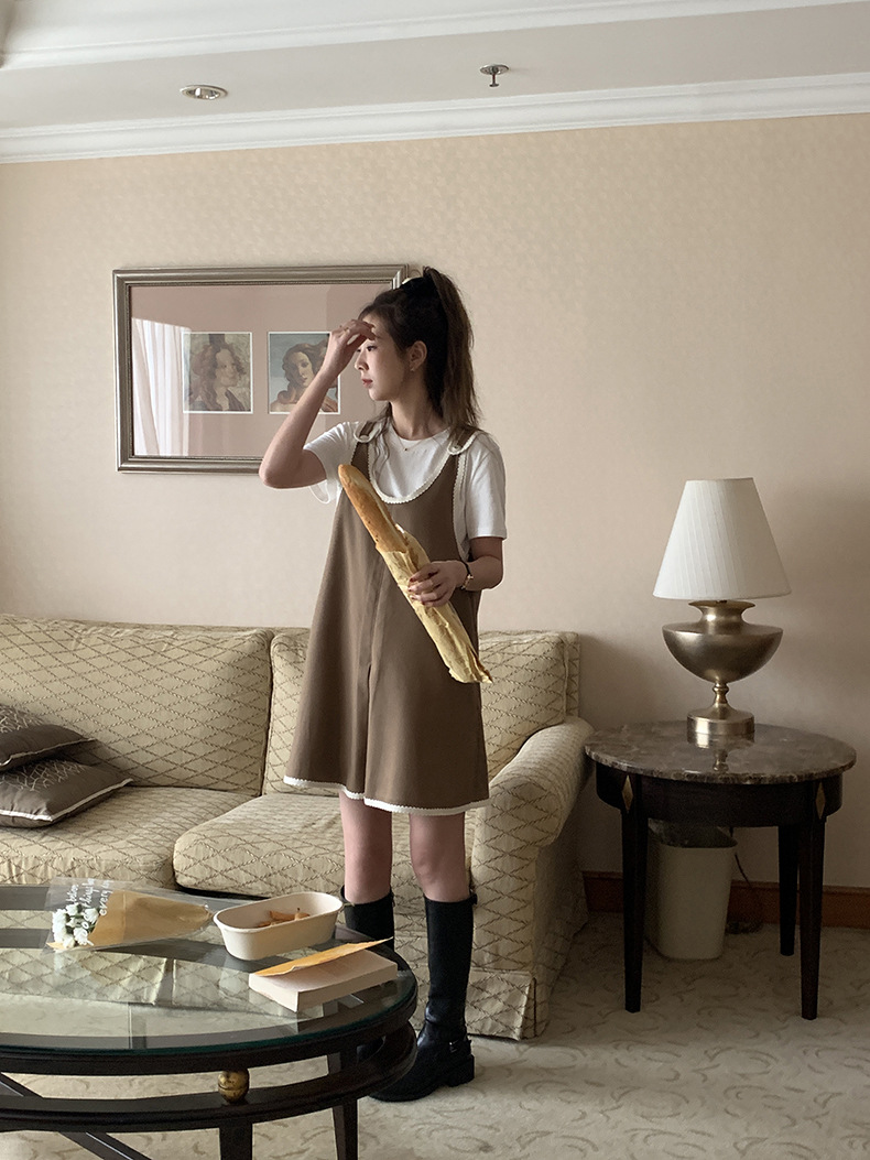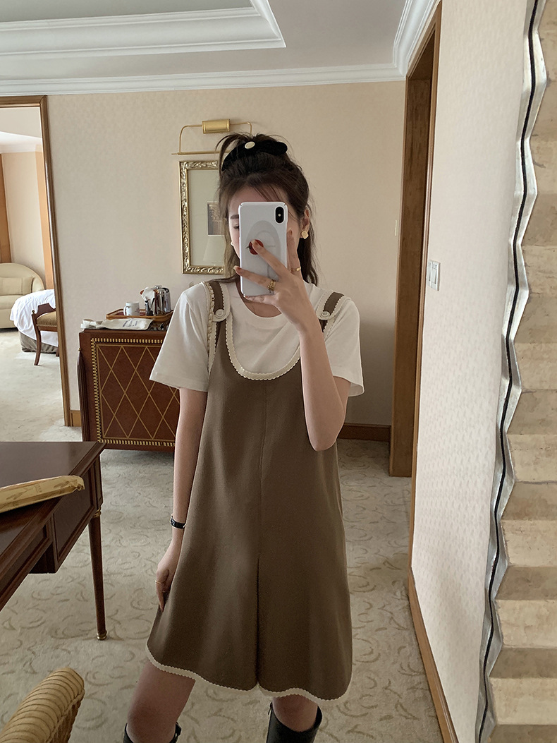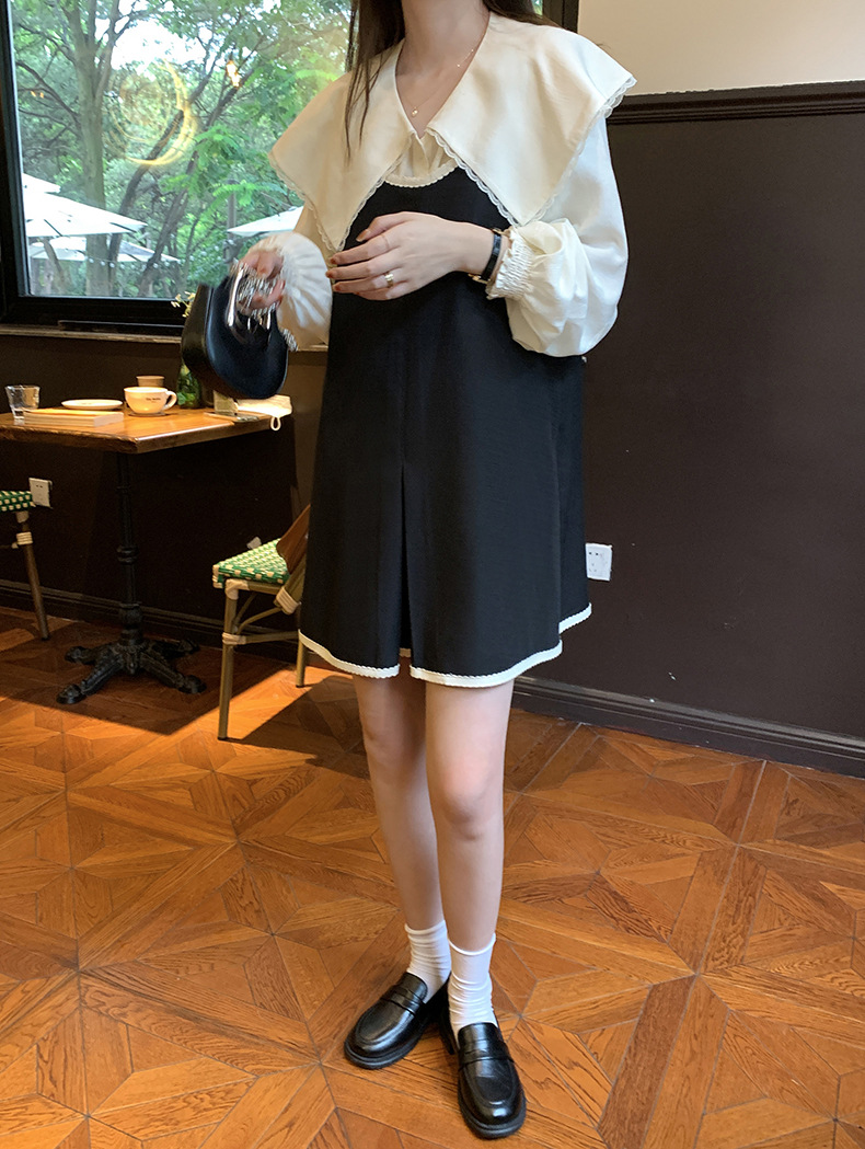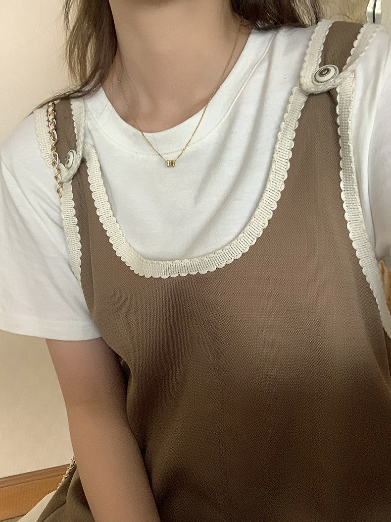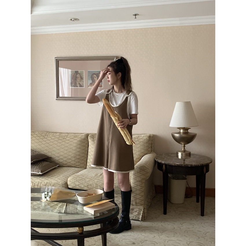 黄峥撞色吊带连衣裙女2026早秋韩版宽松休闲无袖背心裙123LZ8333