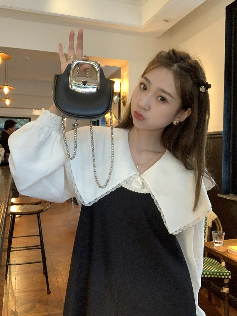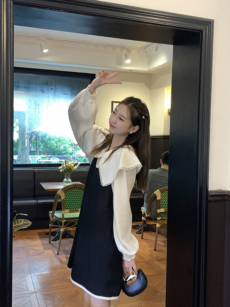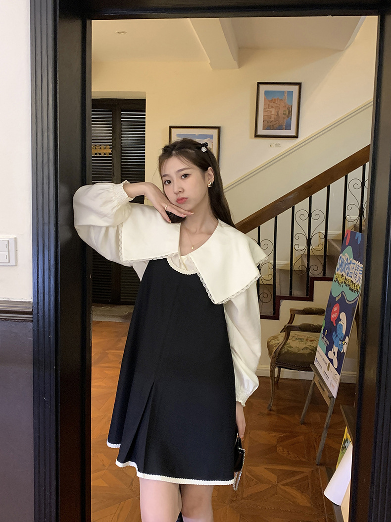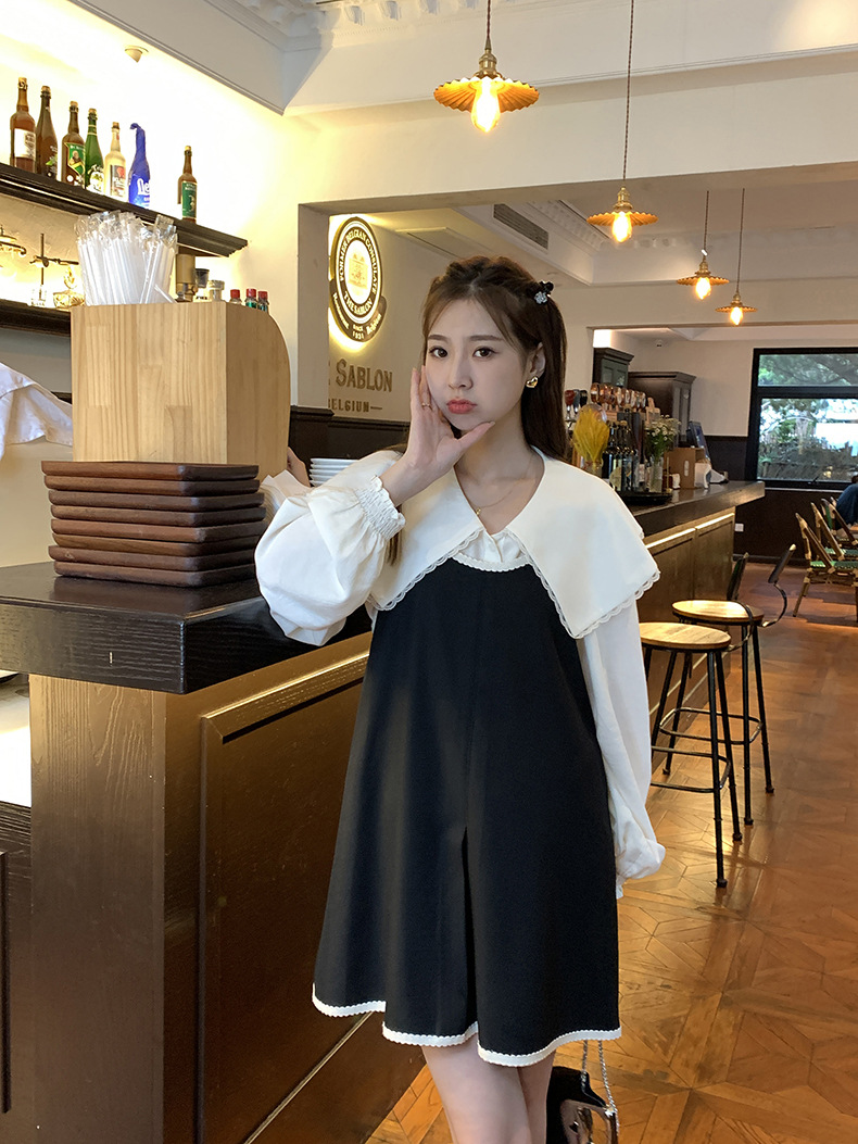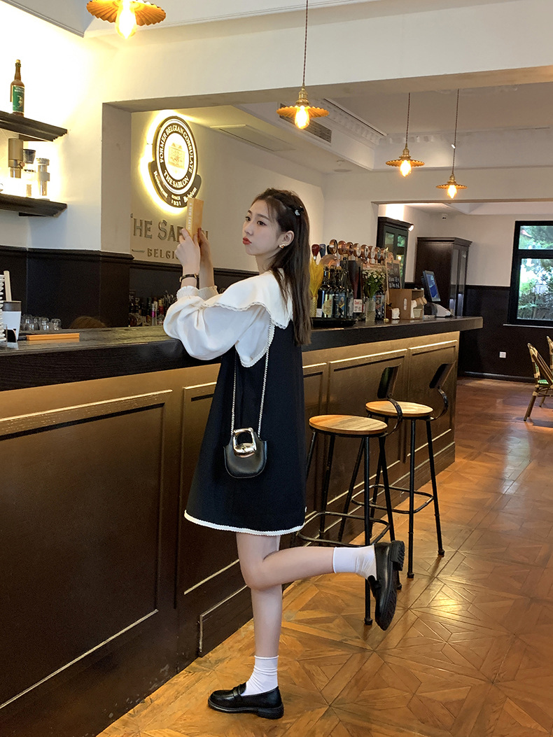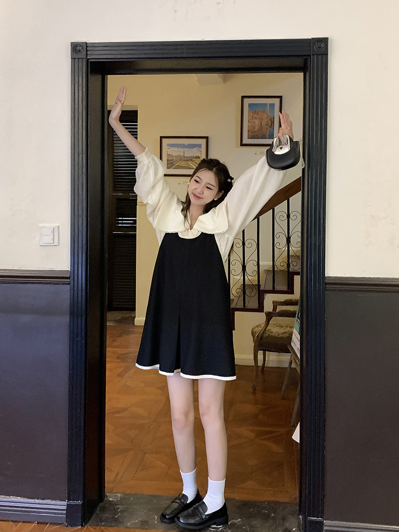黄峥撞色吊带连衣裙女2026早秋韩版宽松休闲无袖背心裙123LZ8333