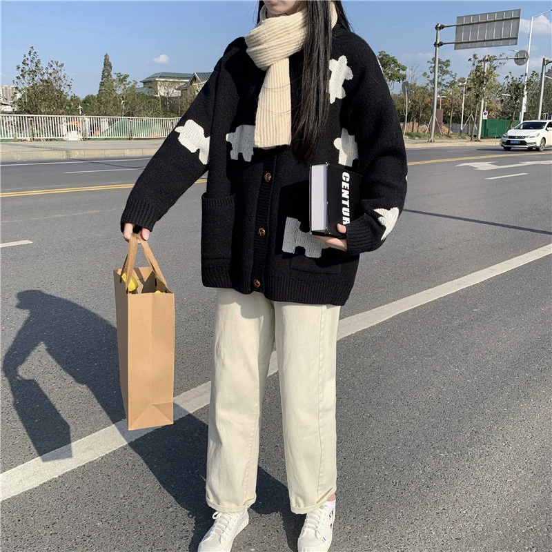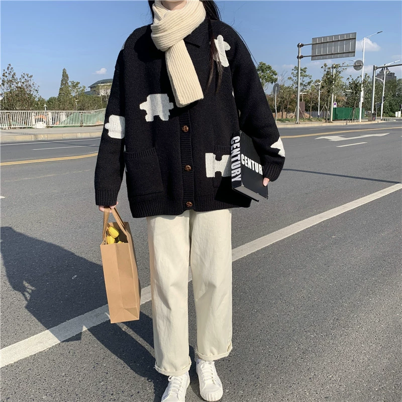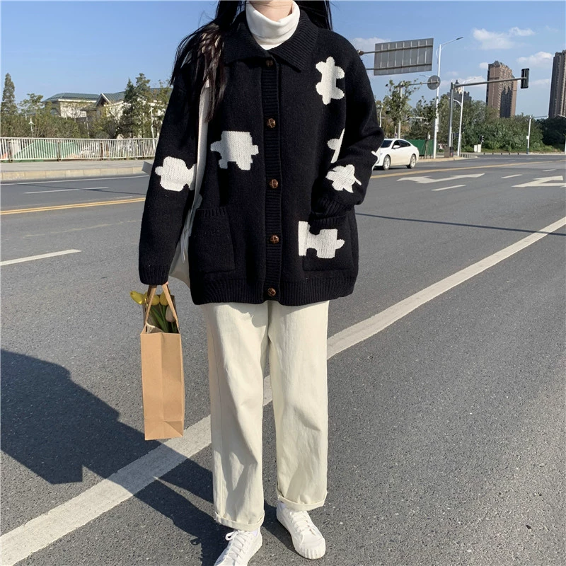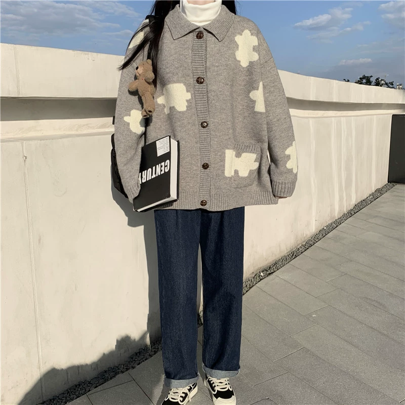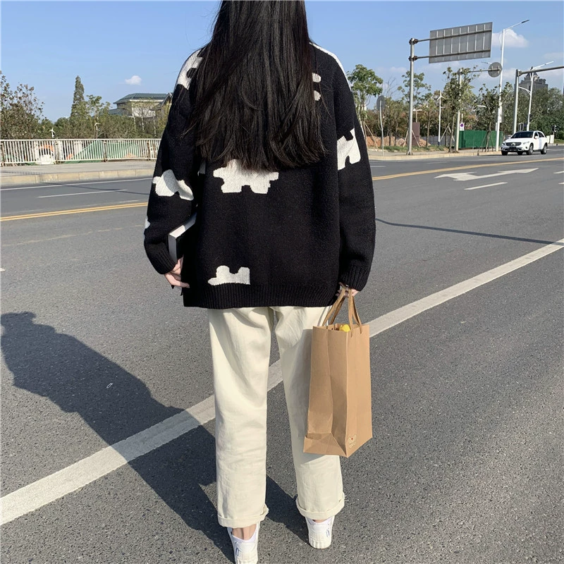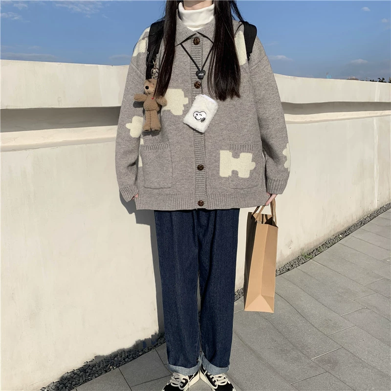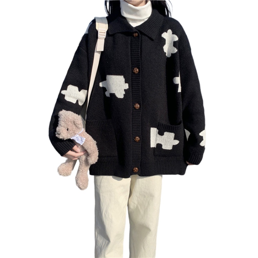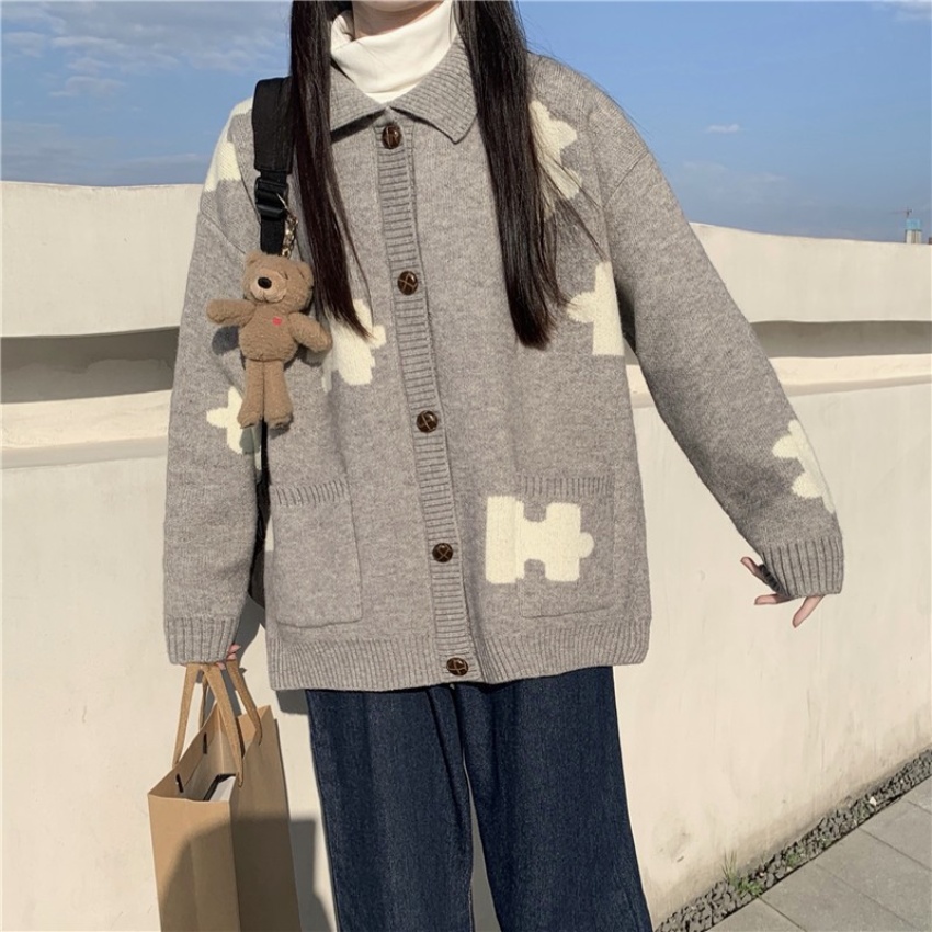 毛衣外套女秋冬装新款初中高中学生韩版宽松慵懒风针织衫外穿