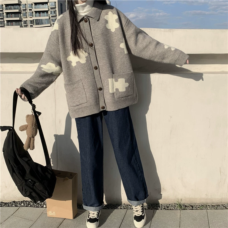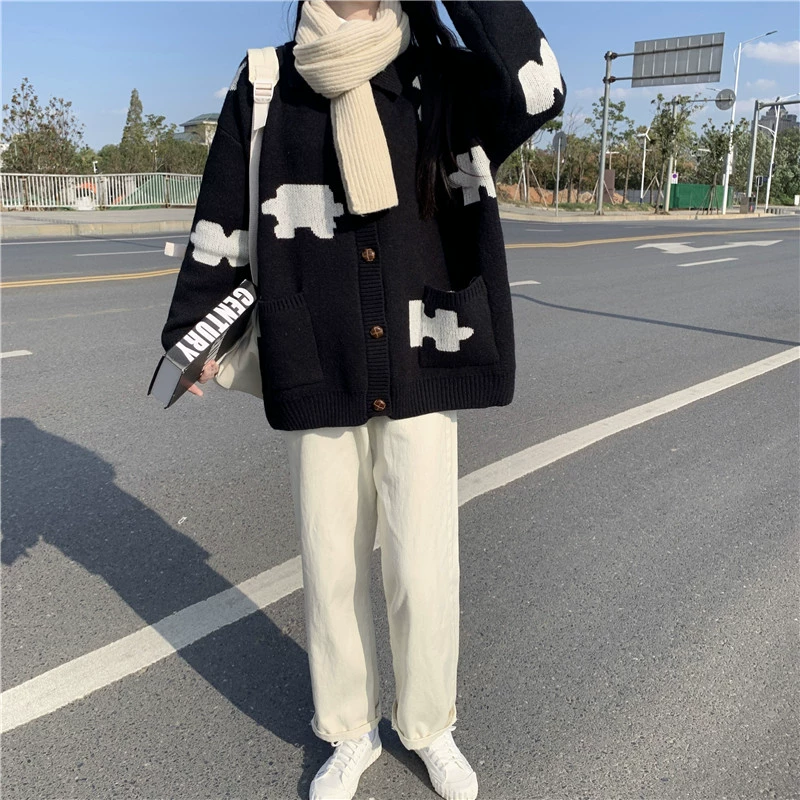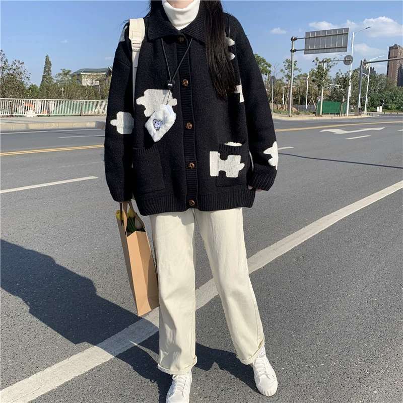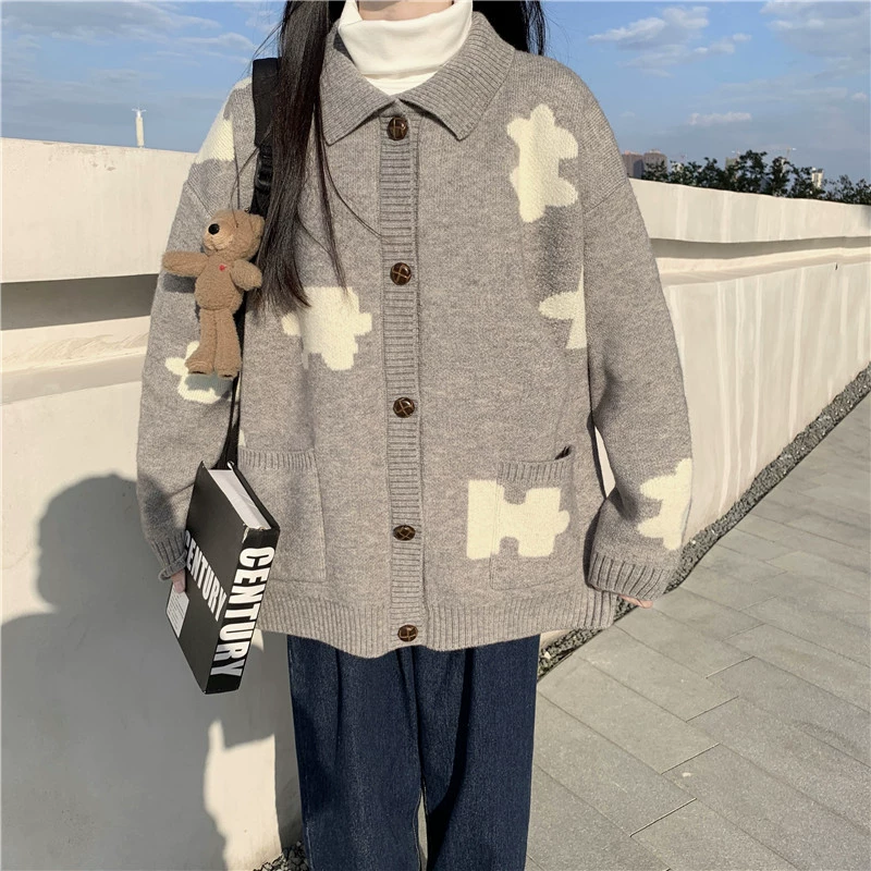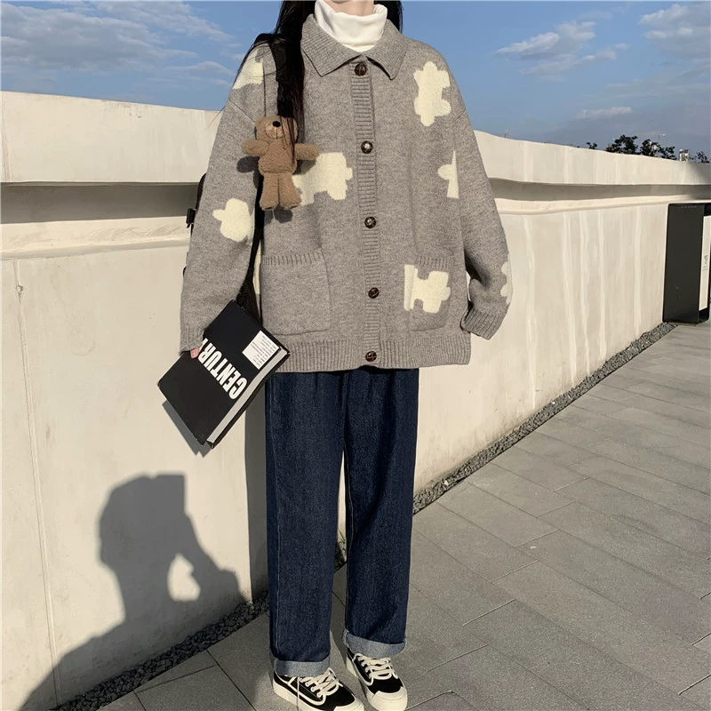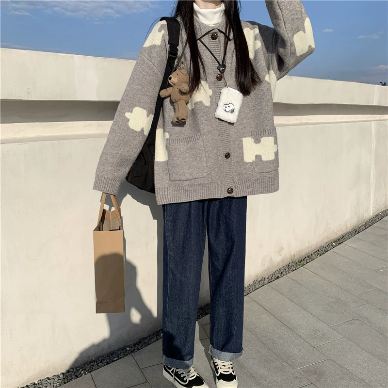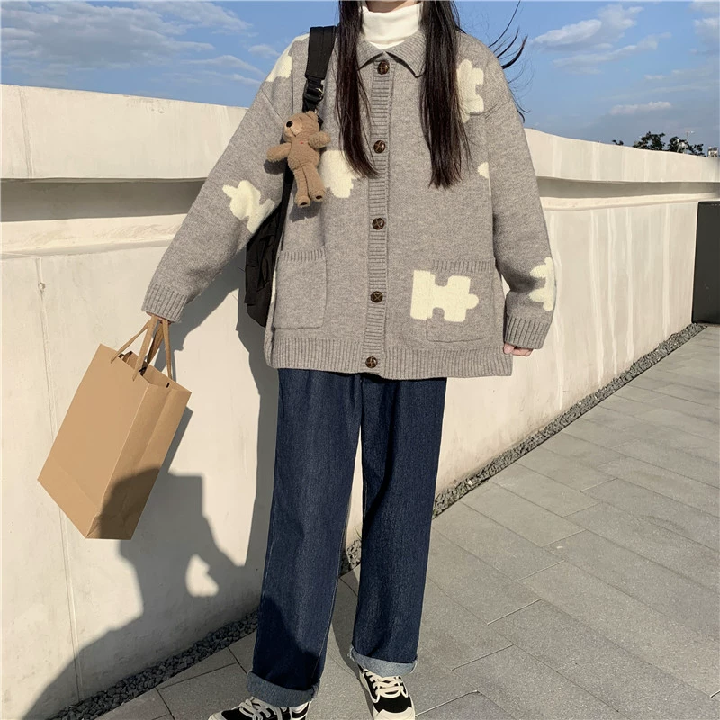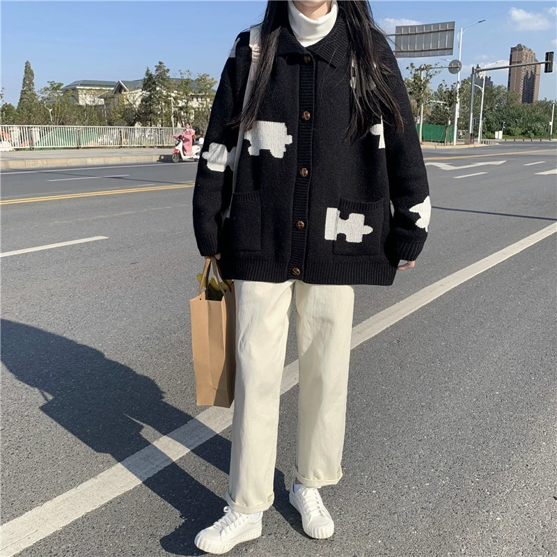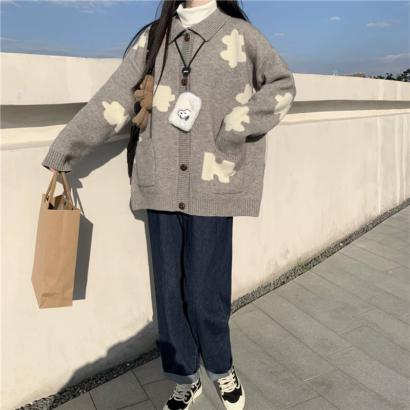 毛衣外套女秋冬装新款初中高中学生韩版宽松慵懒风针织衫外穿