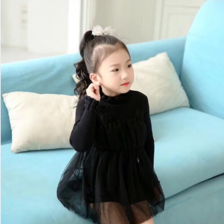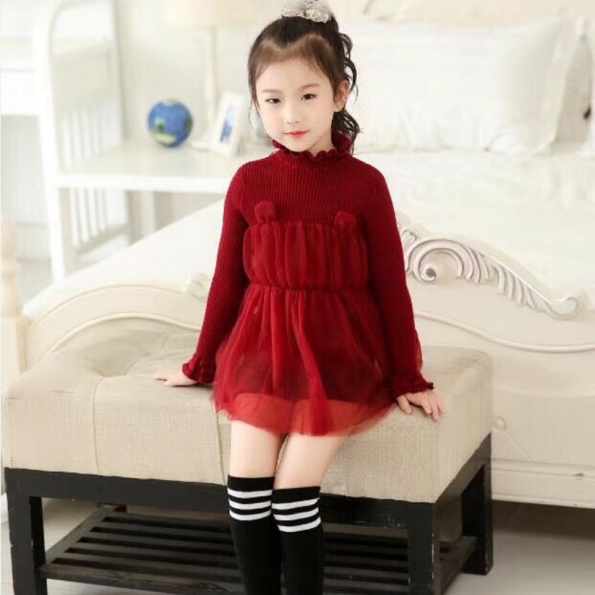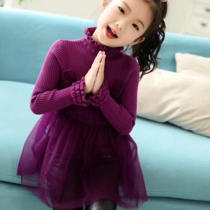 2026年早春季新款针织连衣裙女装时尚配大衣拼接网纱针织毛衣裙女