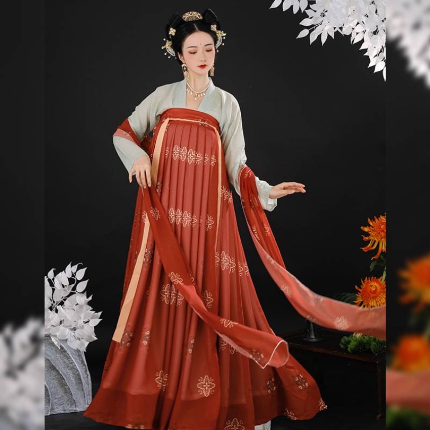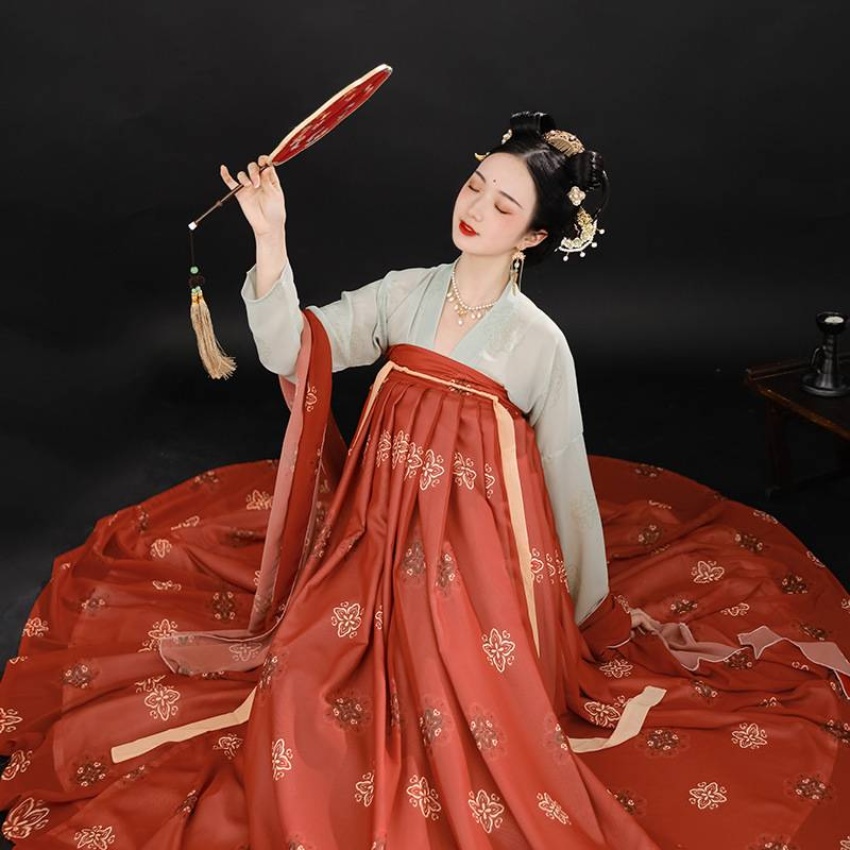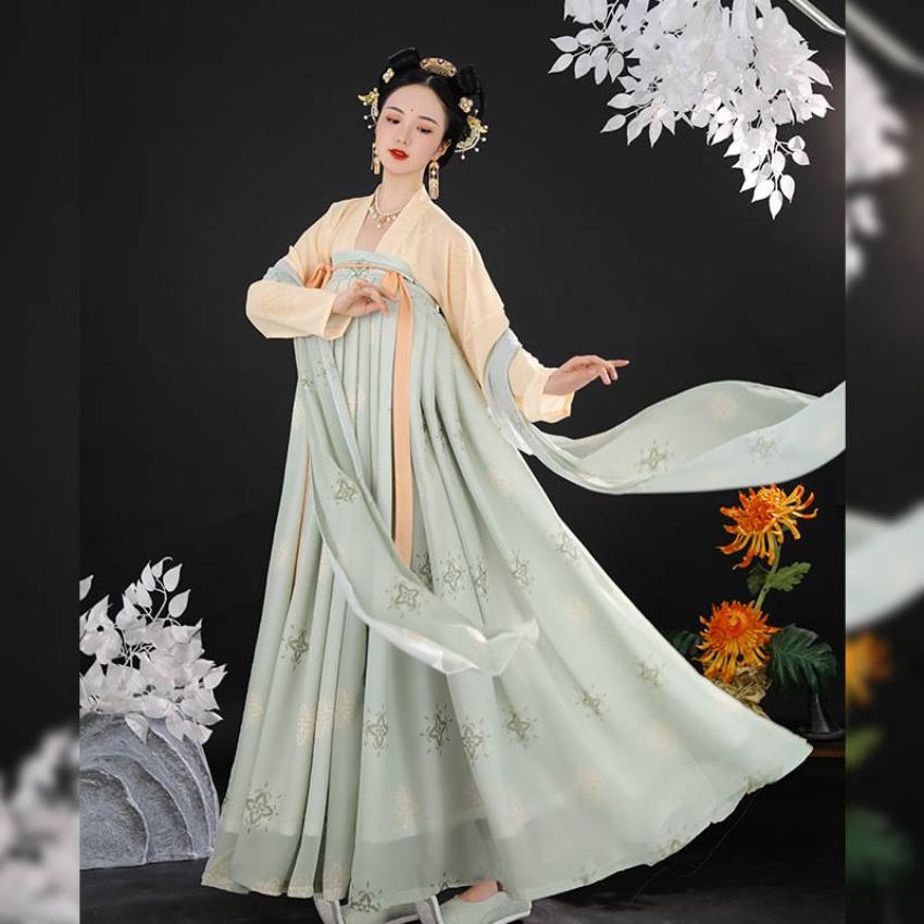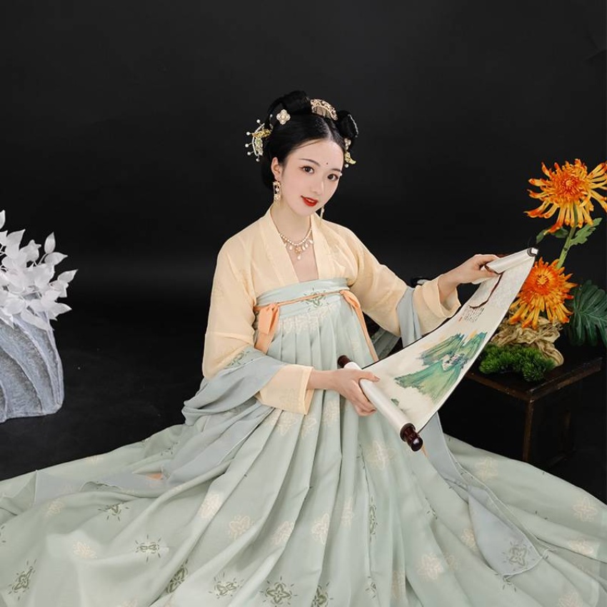 【支持一件代发】汉服女成人新款齐胸儒裙对襟一片式复原唐风古装飘逸春夏仙气 连衣裙