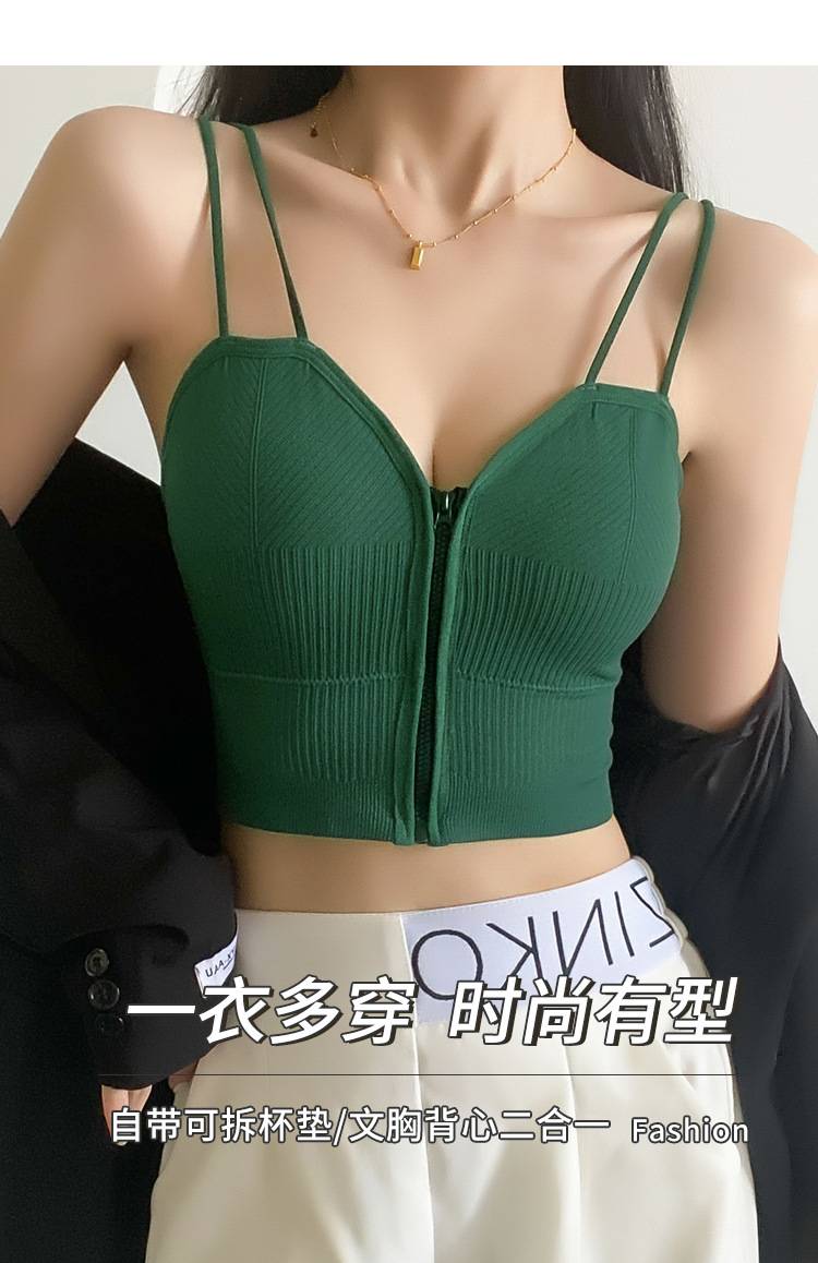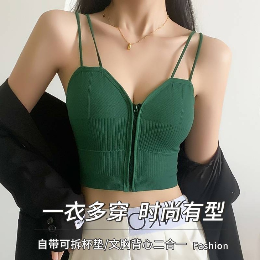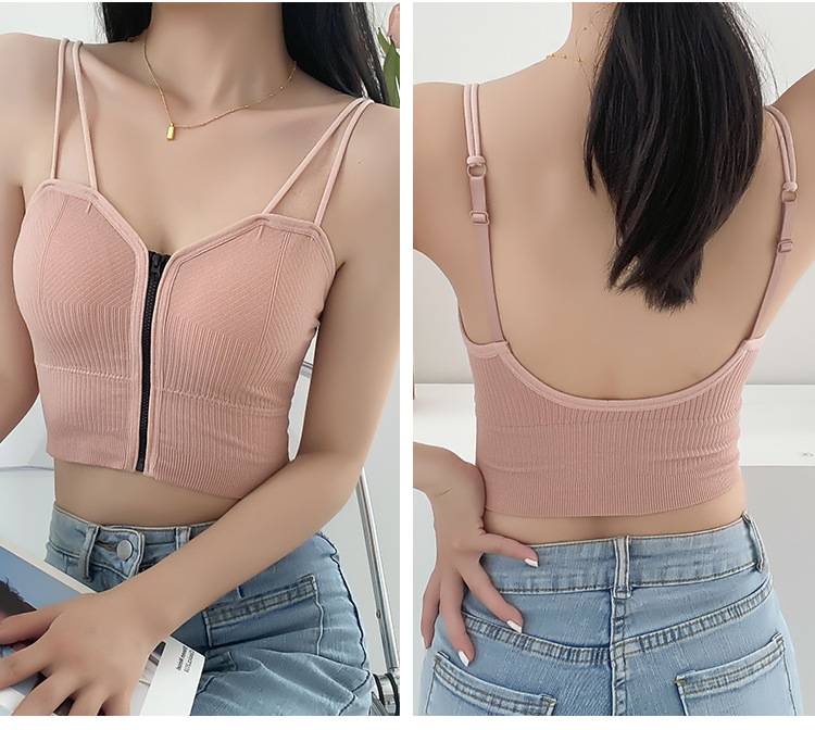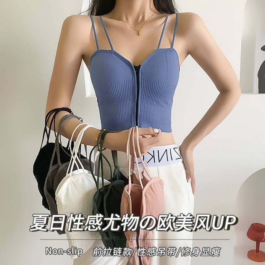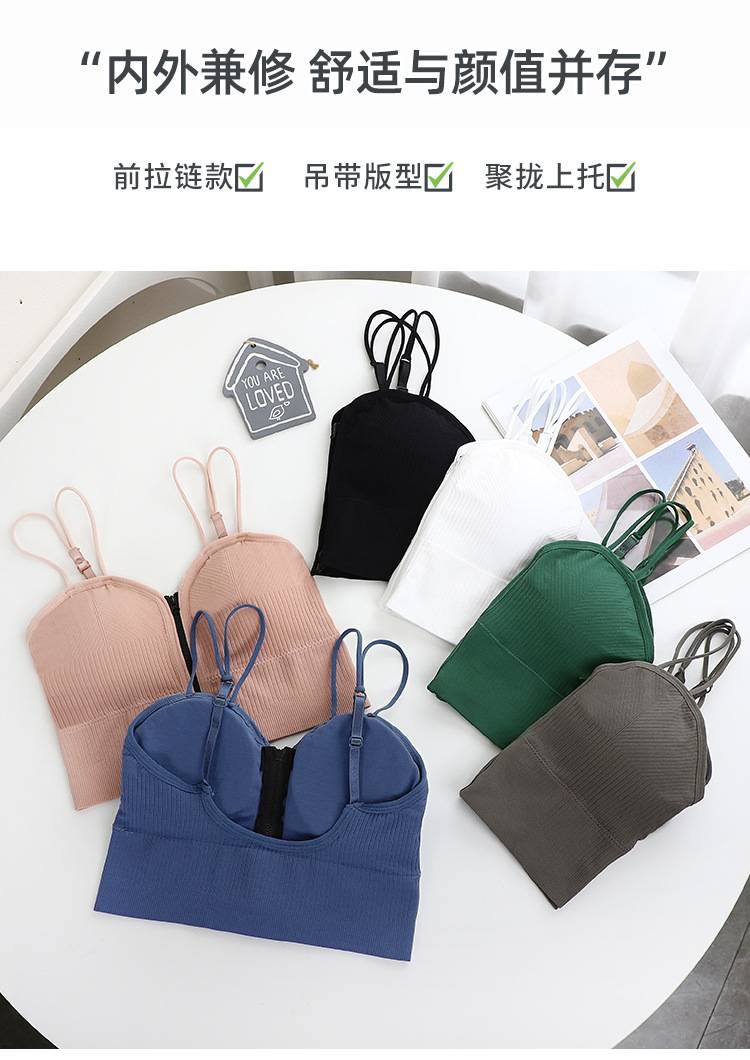 时尚拉链设计辣妹内搭美背吊带背心带胸垫外穿打底裹胸抹胸内衣女