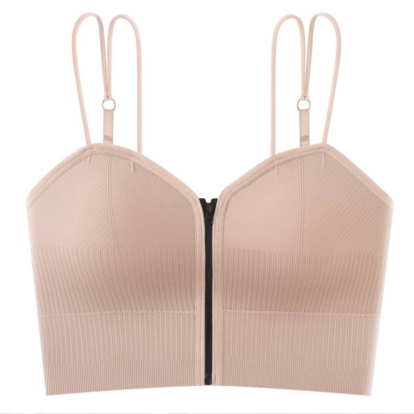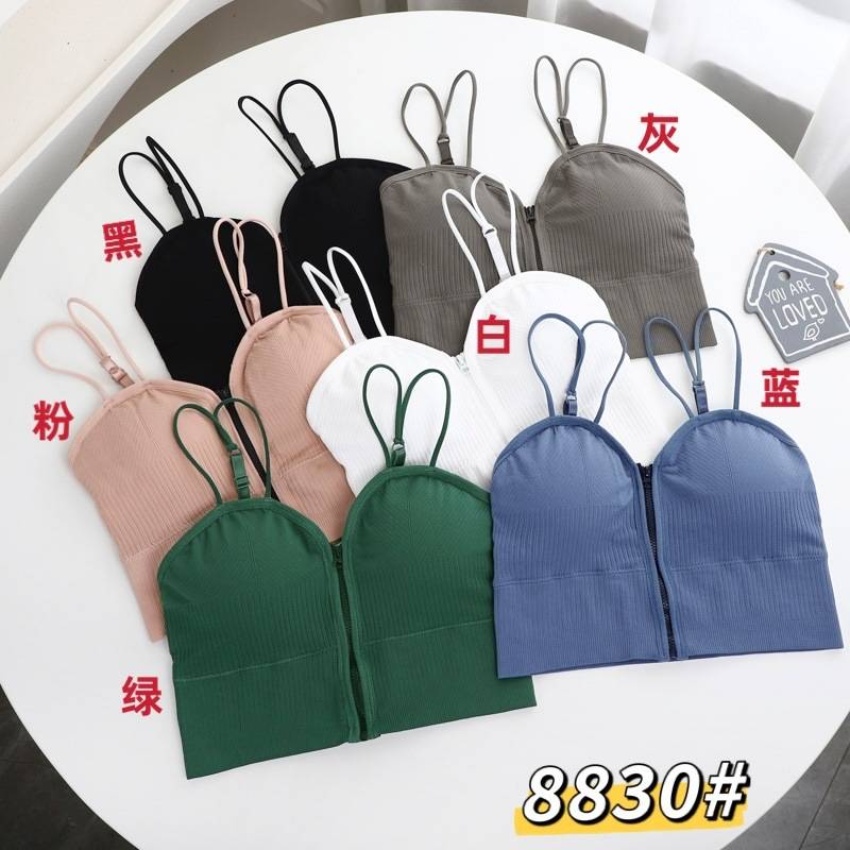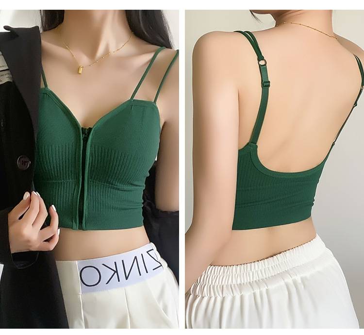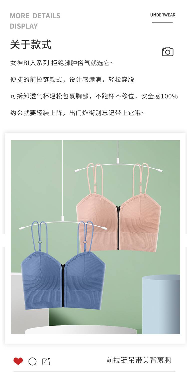 时尚拉链设计辣妹内搭美背吊带背心带胸垫外穿打底裹胸抹胸内衣女