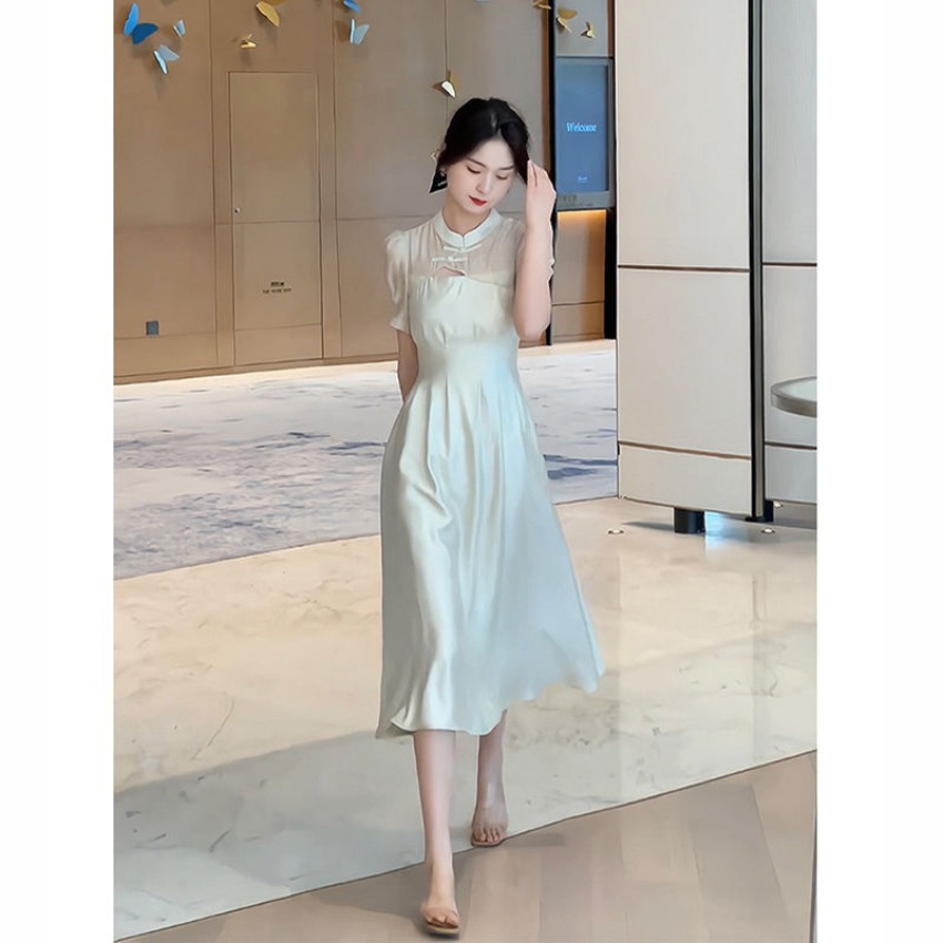 2022新款夏季复古改良旗袍收腰显瘦中长裙子小众气质连衣裙女