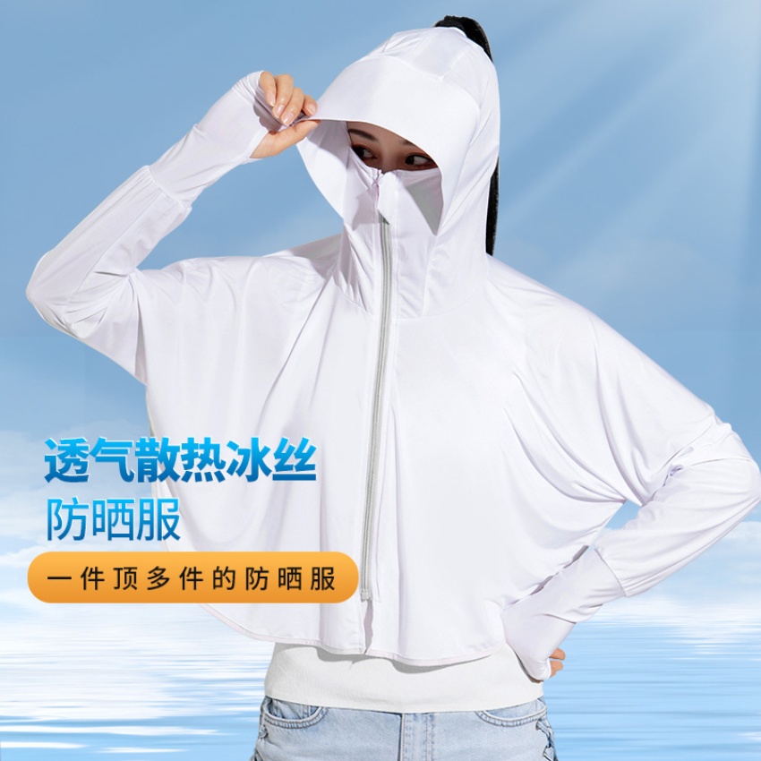 防晒衣女新款防晒服防紫外线冰丝罩衫薄款透气连帽运动外套女