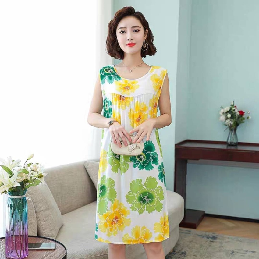 包邮妈妈装睡裙女夏棉绸宽松大码无袖连衣裙中老年女装家居中长款睡衣