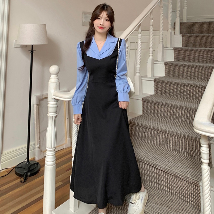 2026春款跨境爆款秋冬新款连衣裙日韩女装拼接假两件中长款现货