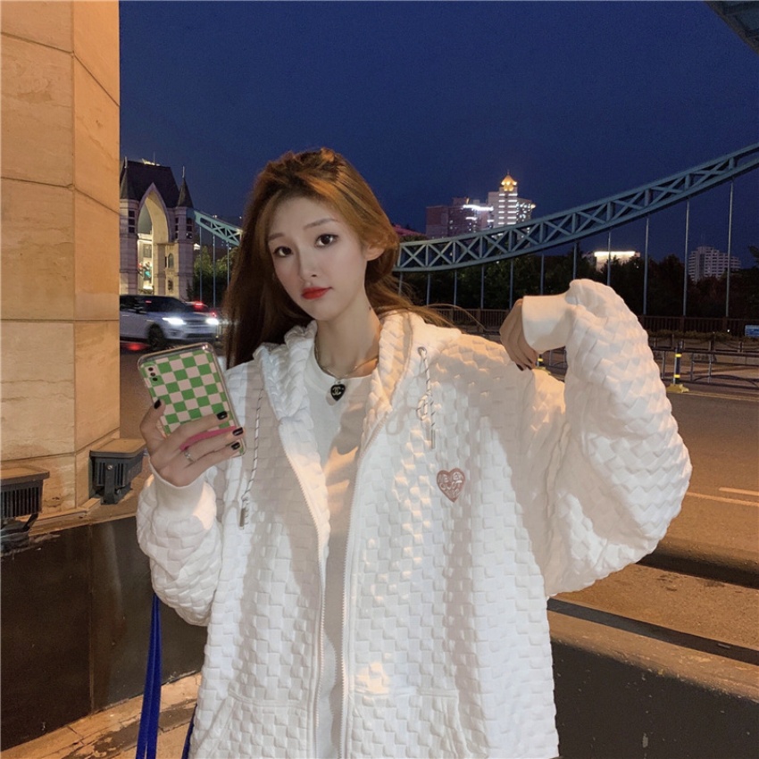 2025秋季新款华夫格卫衣女薄款韩版上衣连帽拉链开衫女装外套