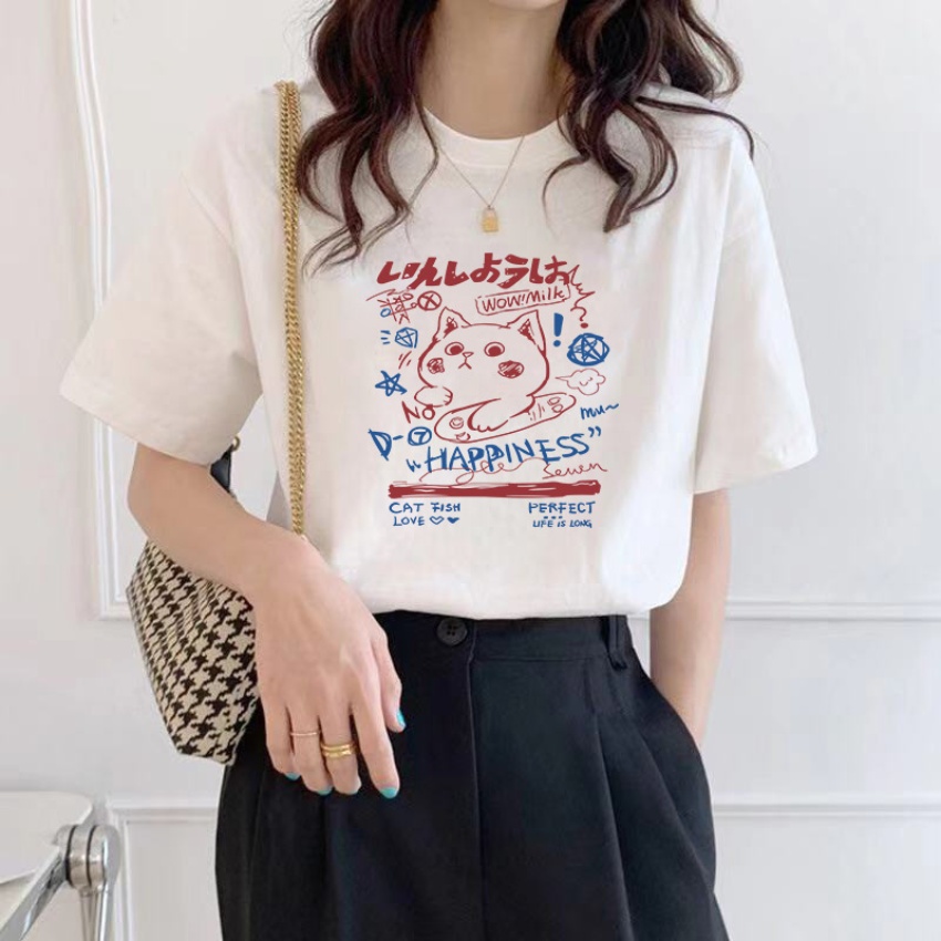 210克包边纯棉短袖印花短袖T恤女2023夏季新款地摊女装上衣ins
