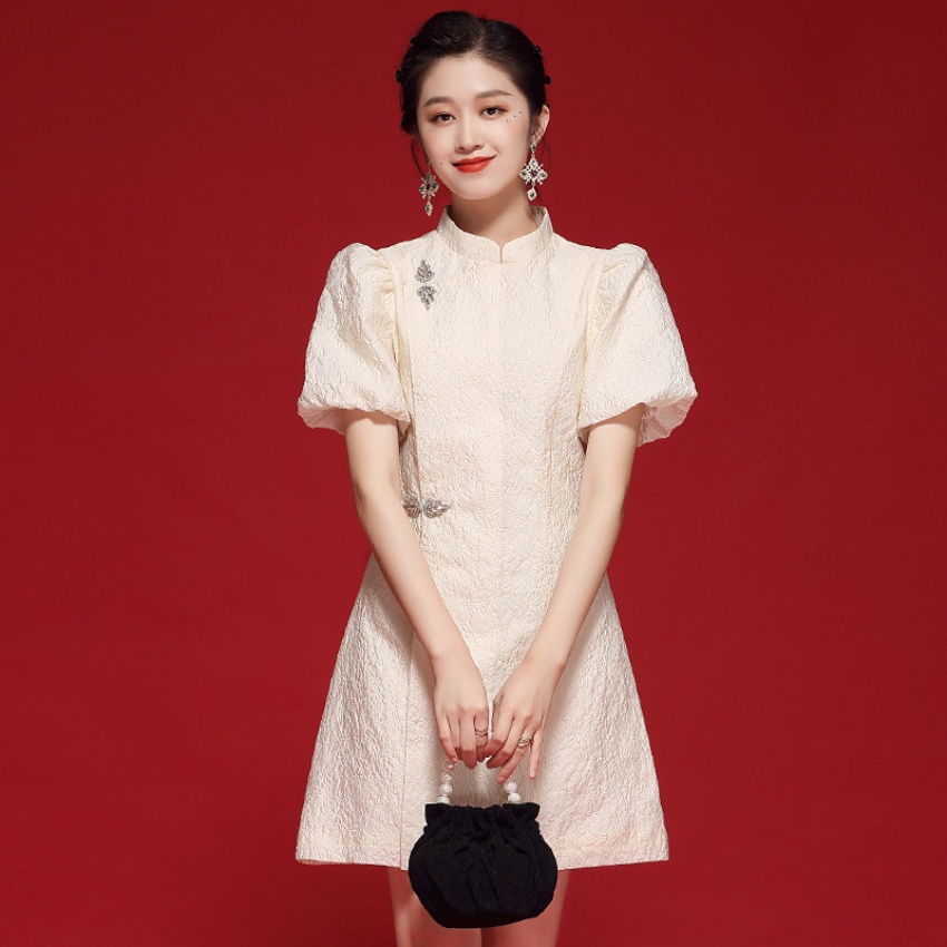 夏季新款女装日常提花棉旗袍连衣裙改良时尚复古绣花短款显瘦旗袍
