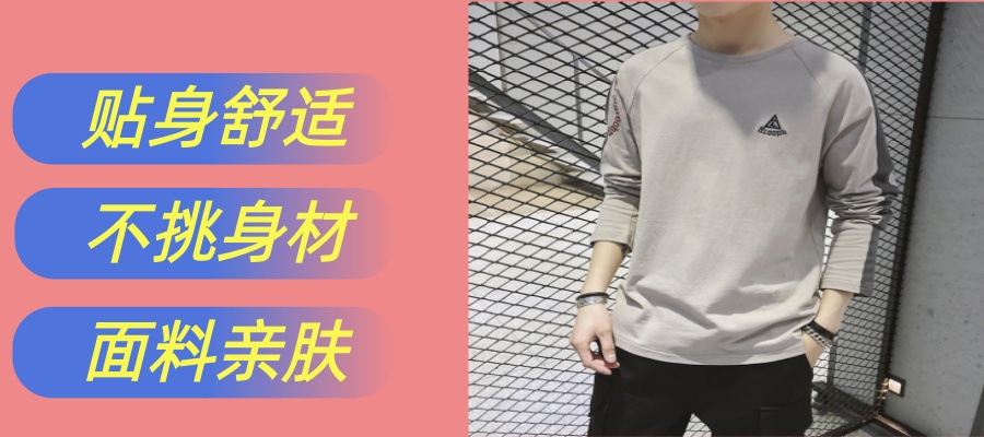 【代发 包邮】春季新款长袖t恤男士潮流纯棉圆领体恤打底衫春装卫衣男上衣刺绣