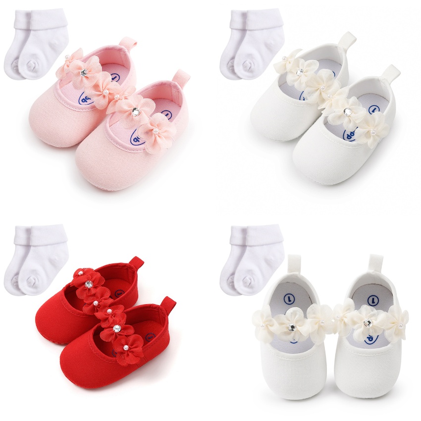 三朵小花婴儿公主鞋宝宝小鞋子学步鞋2件套袜子1810