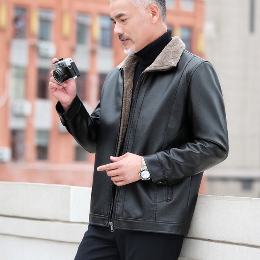 厂家直销皮衣一件代发皮衣加绒加厚皮毛一体男士皮衣中老年皮衣商务休闲外套