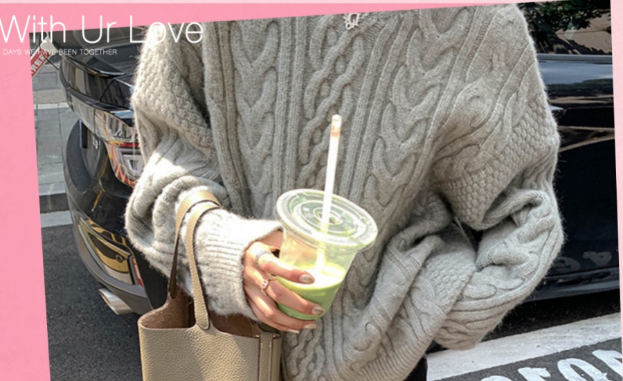 韩系温柔风麻花编织套头毛衣女秋冬加厚软糯针织衫女宽松上衣