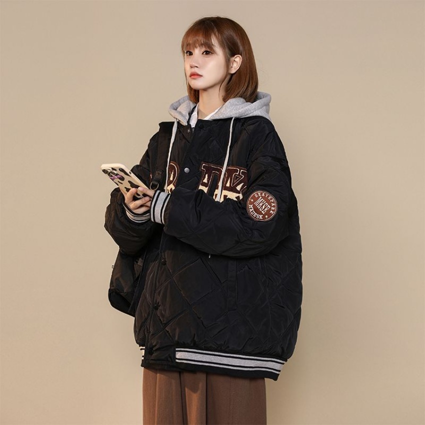棒球棉服女美式复古宽松连帽羽绒棉衣2026炸街新款菱格棉袄ins潮