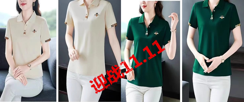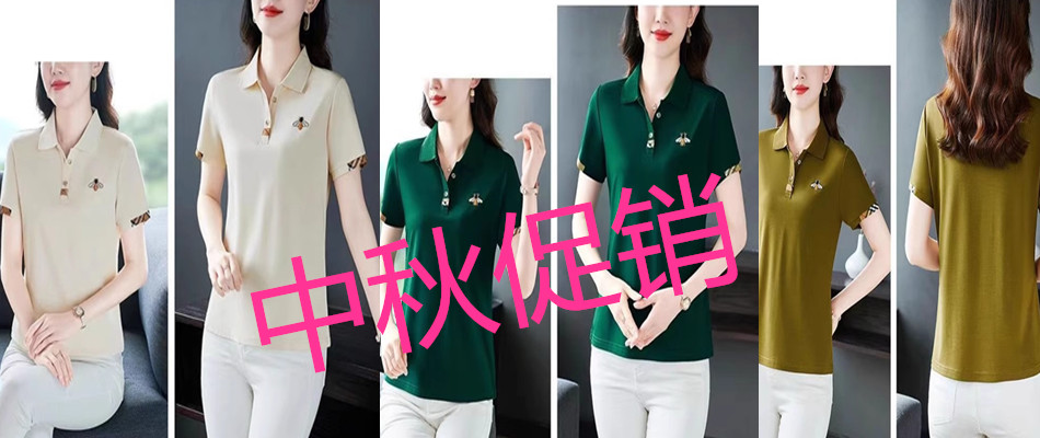 剪标撤柜翻领t恤女短袖夏衫妈妈上衣