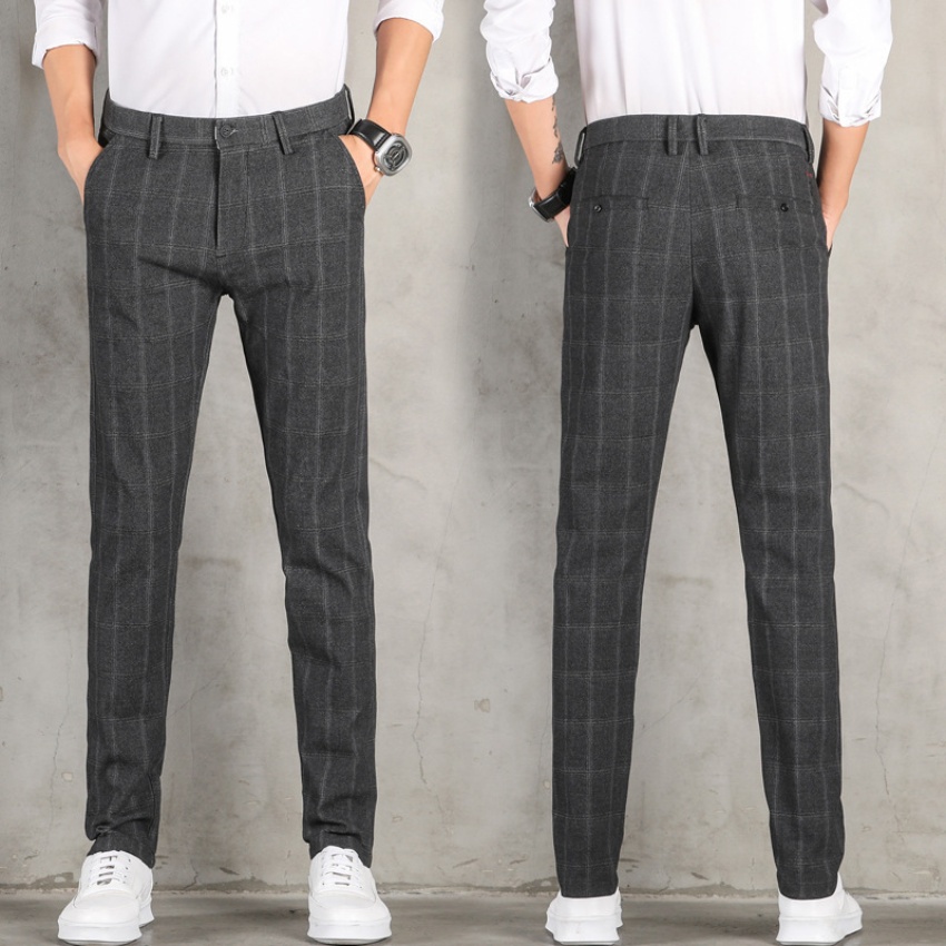 休闲裤男装2020秋季新款男裤子格子长裤韩版潮流修身小脚裤西裤男