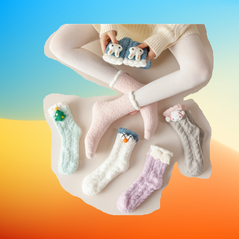 爆款珊瑚绒袜子卡通diy饰品公仔地板袜居家中筒加厚毛绒