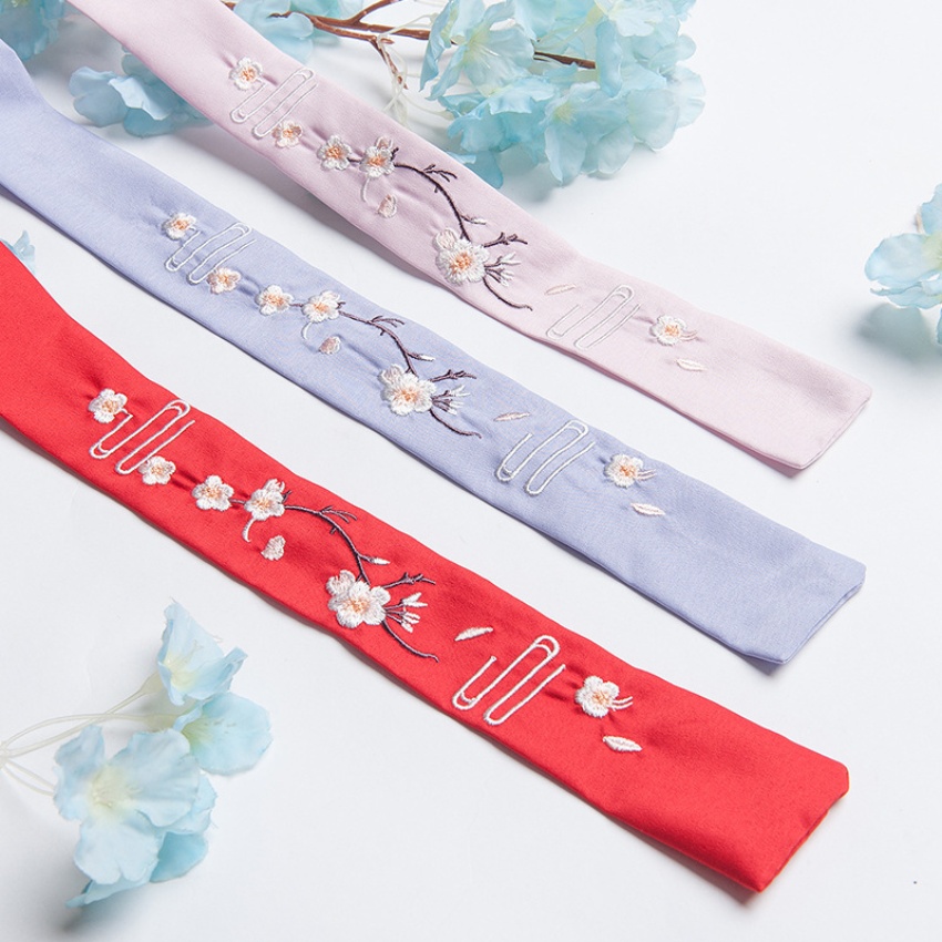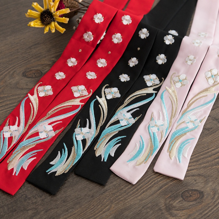 实拍汉服配饰武侠风绣花头带系带民族风古风饰品配饰发带