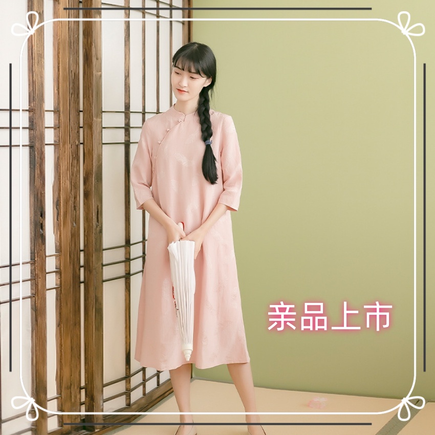 杭州女装2022春/ 高端人丝提花改良旗袍连衣裙新中式连衣裙220420