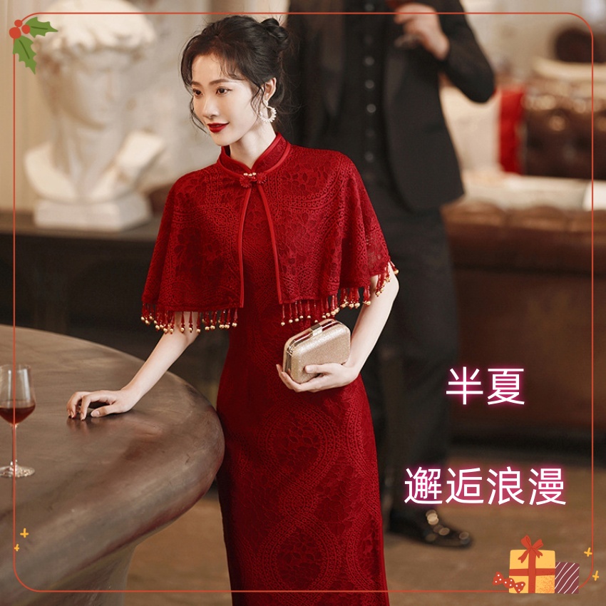 旗袍红色中式敬酒服新娘2022新款结婚礼服订婚连衣裙女春夏季回门