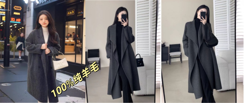 现货毛呢外套2026春季新款韩版中长款过膝双面羊绒呢子大衣女潮
