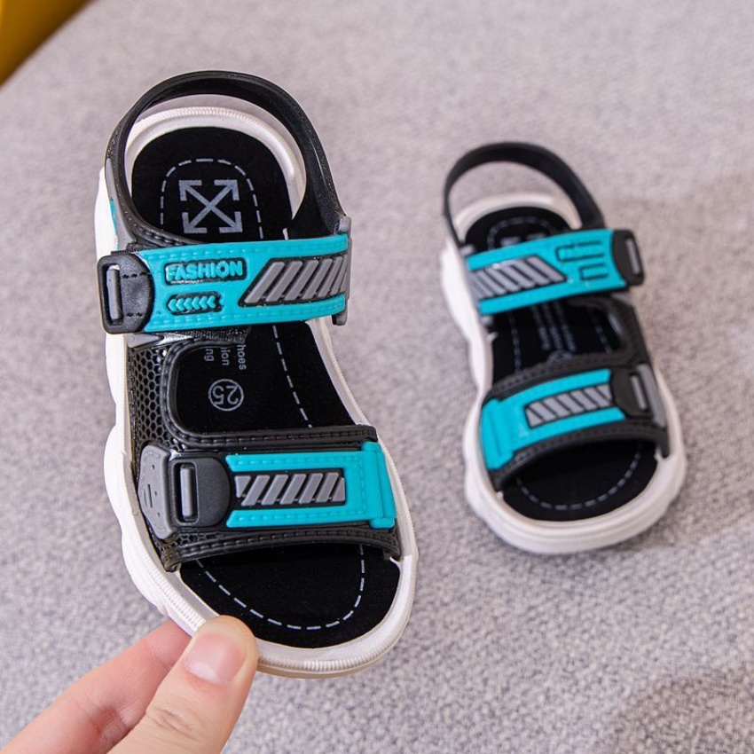 跨境儿童凉鞋2023新款夏季防滑软底中大童魔术贴小童鞋帅气沙滩鞋