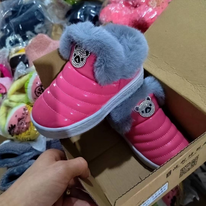 处理4000多双杂款的儿童冬季棉鞋,里面有少量的拖鞋,全清4.5元钱一双,分货5.5元 500双起发,全部都有包装部分的
