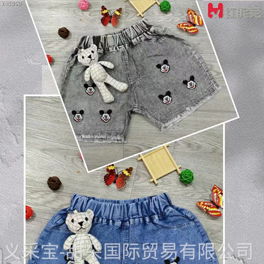 新款夏款女童牛仔短裤女孩小皱菊短裤小中大通牛仔短裤子