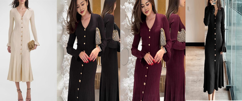 【代发 包邮】法式长袖连衣裙女2025秋季新款名媛气质显瘦赫本风桔梗长裙