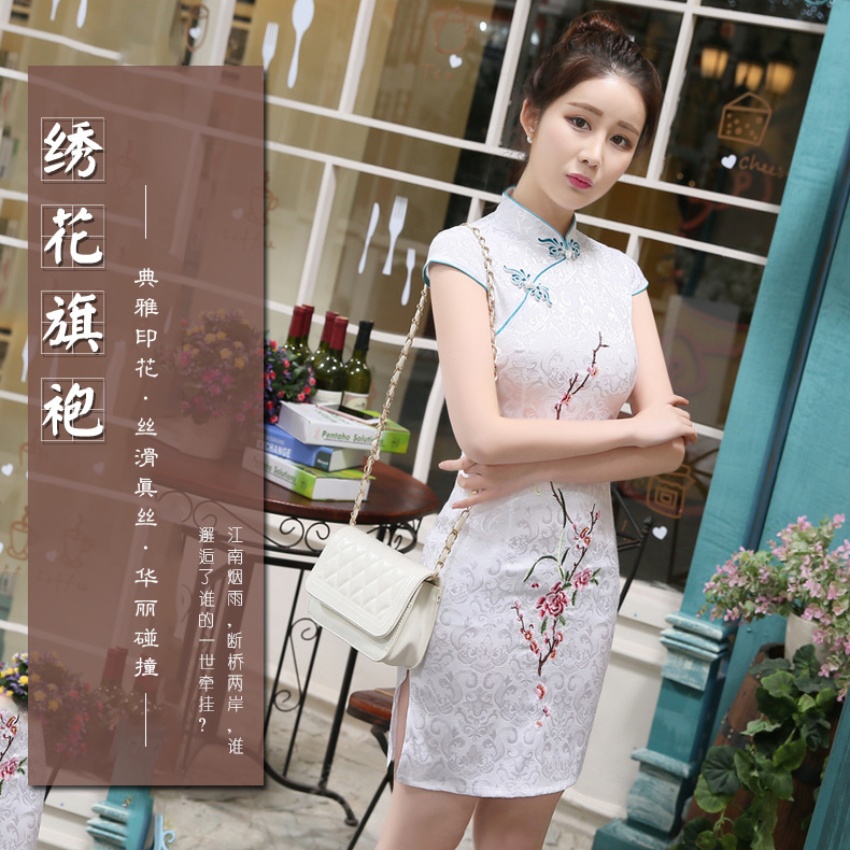 夏季新款女装日常提花棉旗袍连衣裙改良时尚复古绣花短款显瘦旗袍