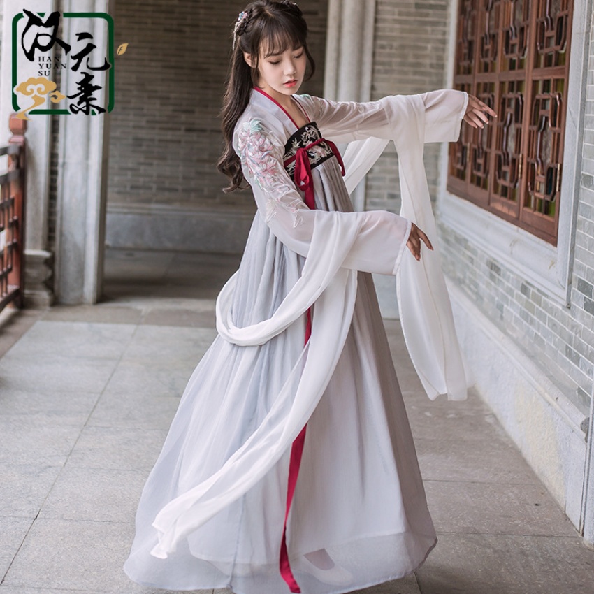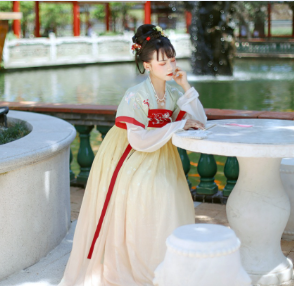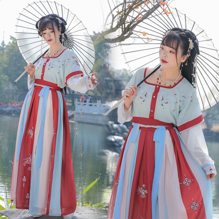 原创 刺绣花齐胸对襟汉服襦裙半臂三件套古风女装4.5米摆仙气