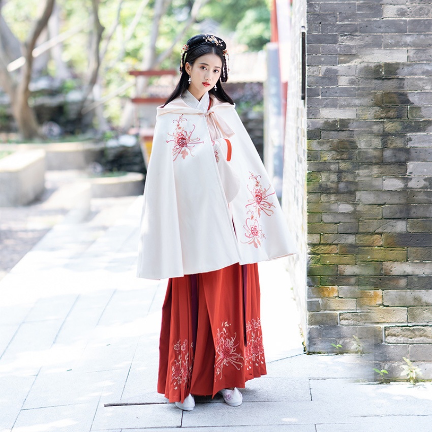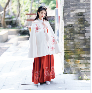 实拍汉服女装配饰刺绣白色连帽短斗蓬秋冬日常款
