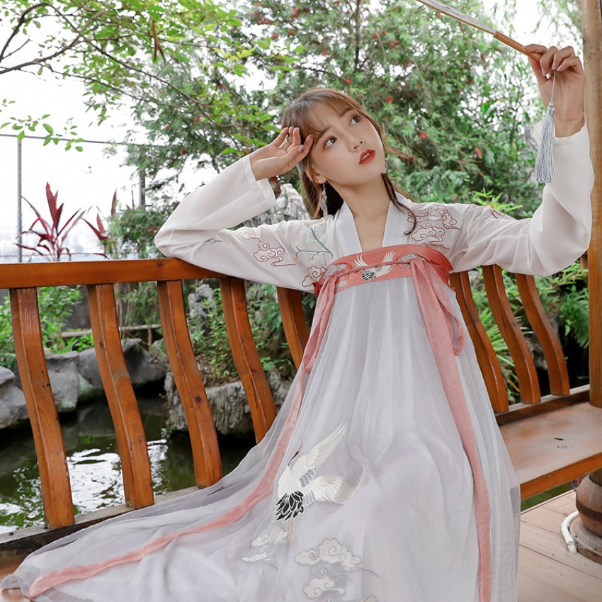 原创正品汉服复古中国风女装仙鹤汉元素少女日常两穿舞蹈表演套装