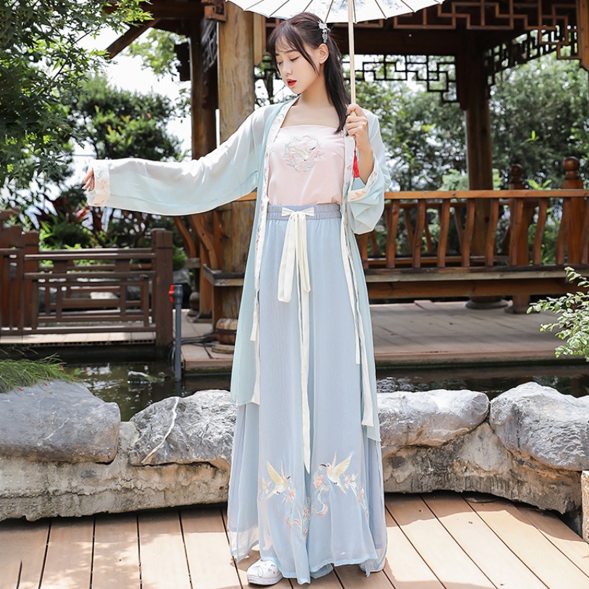 新款长褙子对襟汉服女装改良古装日常刺绣宋裤广场舞服装新款套装
