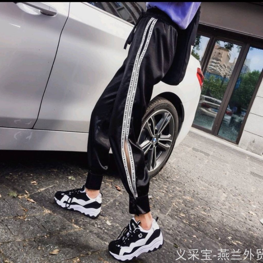 紫色运动裤女嘻哈韩版潮学生宽松原宿bf港味ins超火的裤子